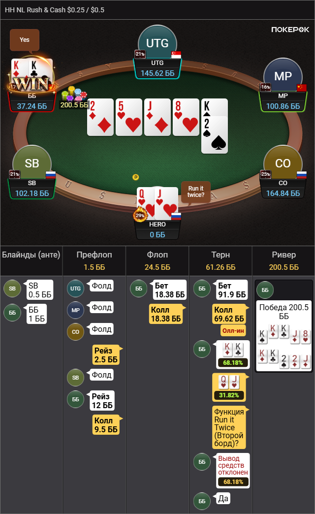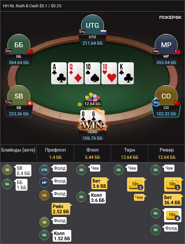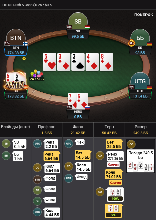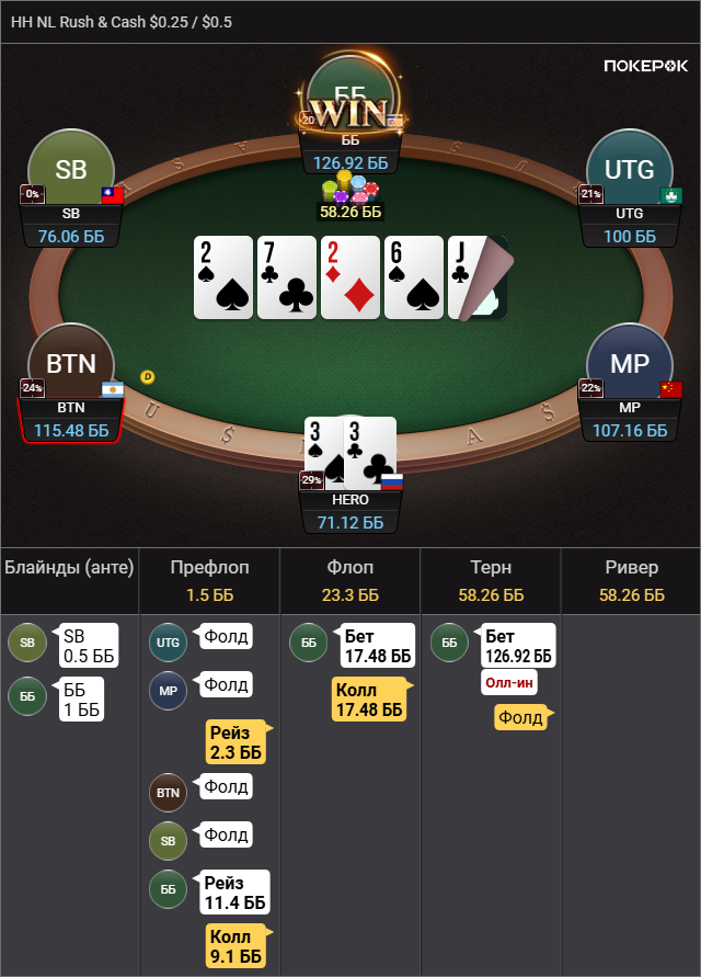 >так что колл вроде натягивается Да там пиздец сессия была, 500 рук тупа каждый банк проебал, это для раша немного, но этого отрезка хватило чтобы зашугался и выкинул АКо в ужасе.