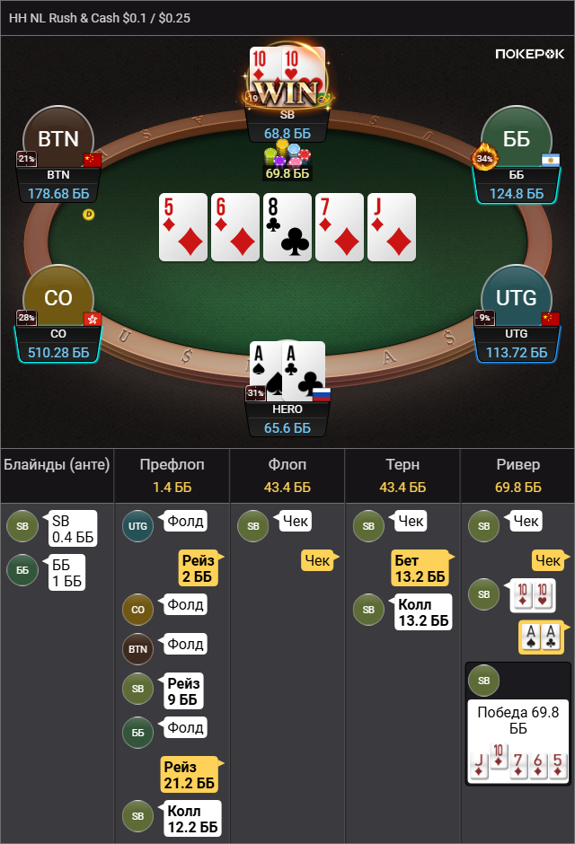 Выбивает все мои TT-KK, которые дают бедбит джекпот, проплачивает миллиард карет, ведь в мультипоте в колесо флопом я вполне могу ренжчекать и все тузы у меня будут. Браво маэстро.