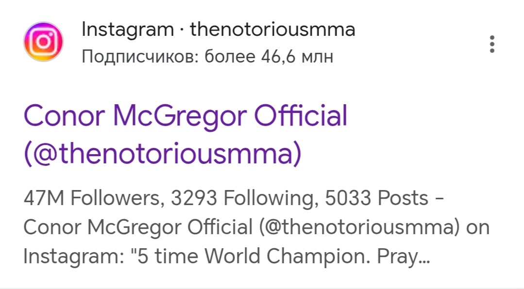 >>3221044 >Макчикен буквально никто Всего-лишь самый популярный боец в истории спорта и один из самых популярных спортсменов в мире, наряду с Роналду, Овечкиным, Канелло и Дзюбой