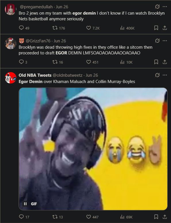 «Демин трижды тренировался с «Нетс» во время преддрафтового процесса, что необычно много. Но он явно произвел впечатление