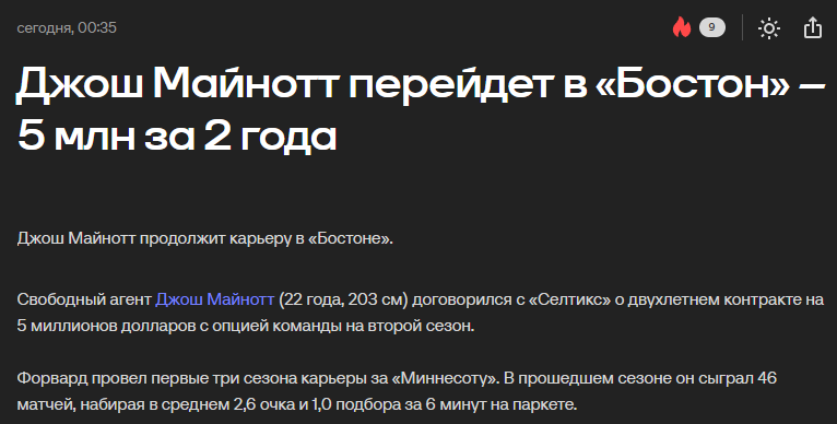 Повезло Дёмину. Попал в хорошую организацию, где будет в старте выходить. Теперь всё зависит только от него самого, насколько там серьёзные проблемы с броском и тд.