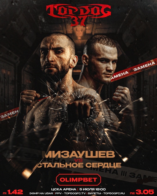 >ЗАМЕНА: Музарин Мизаушев – Вячеслав «Стальное Сердце» Стариков | Полусредний вес, до 77 кг