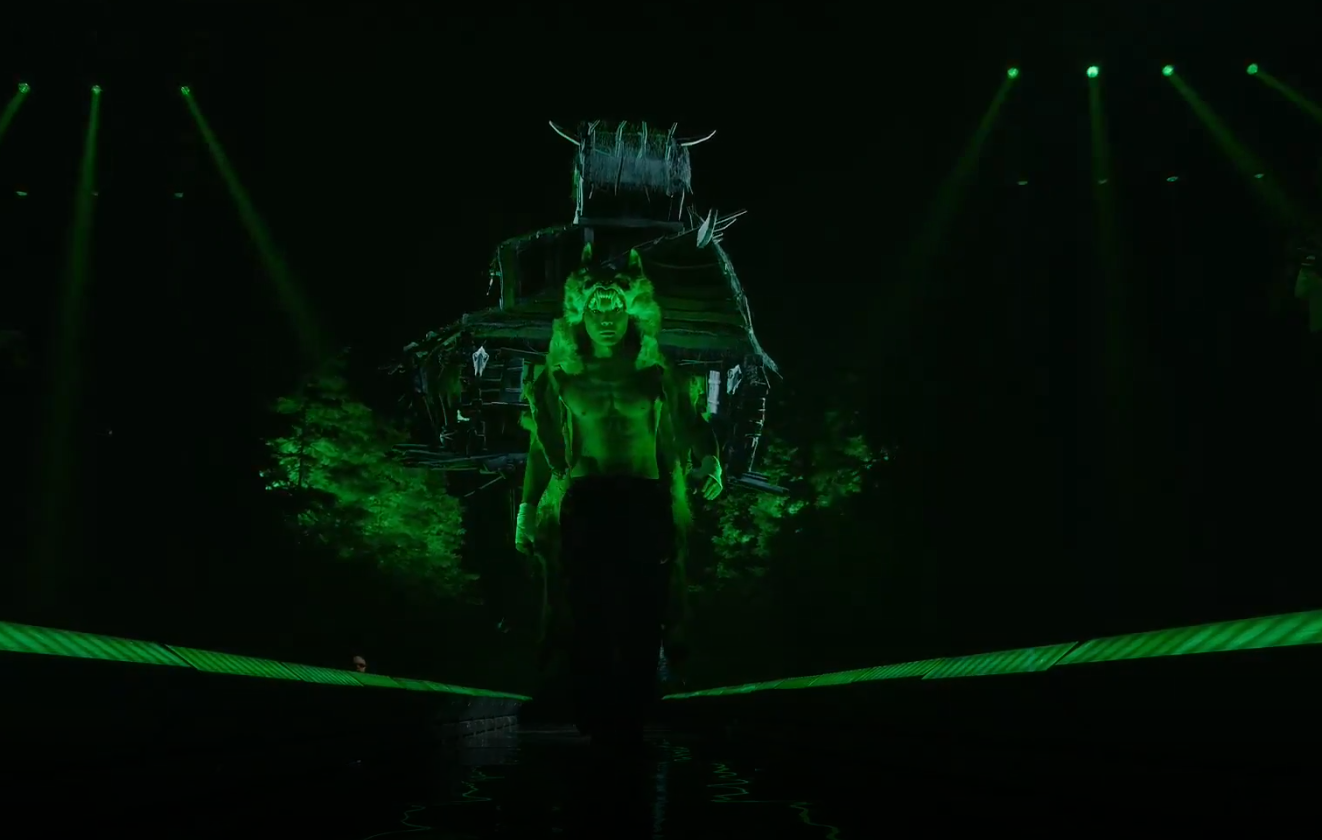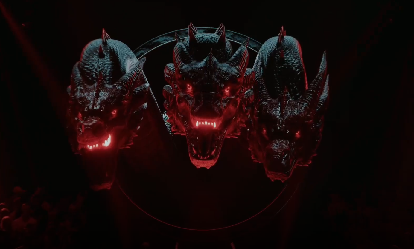 Скорее всего, такое тематическое оформление выбрали в знак уважения к Териблу, так как он как раз угарает от всего этого русского колорита - медведи, волки, балалайки, матрешки. В одном из интервью он рассказал, что обнимался с дрессированным бурым медведем для клипа, который стал очень популярным на Западе. Короче, это временное решение, рассчитанное на конкретный эвент. Собаку вернут к следующему эвенту либо заменят на другое животное