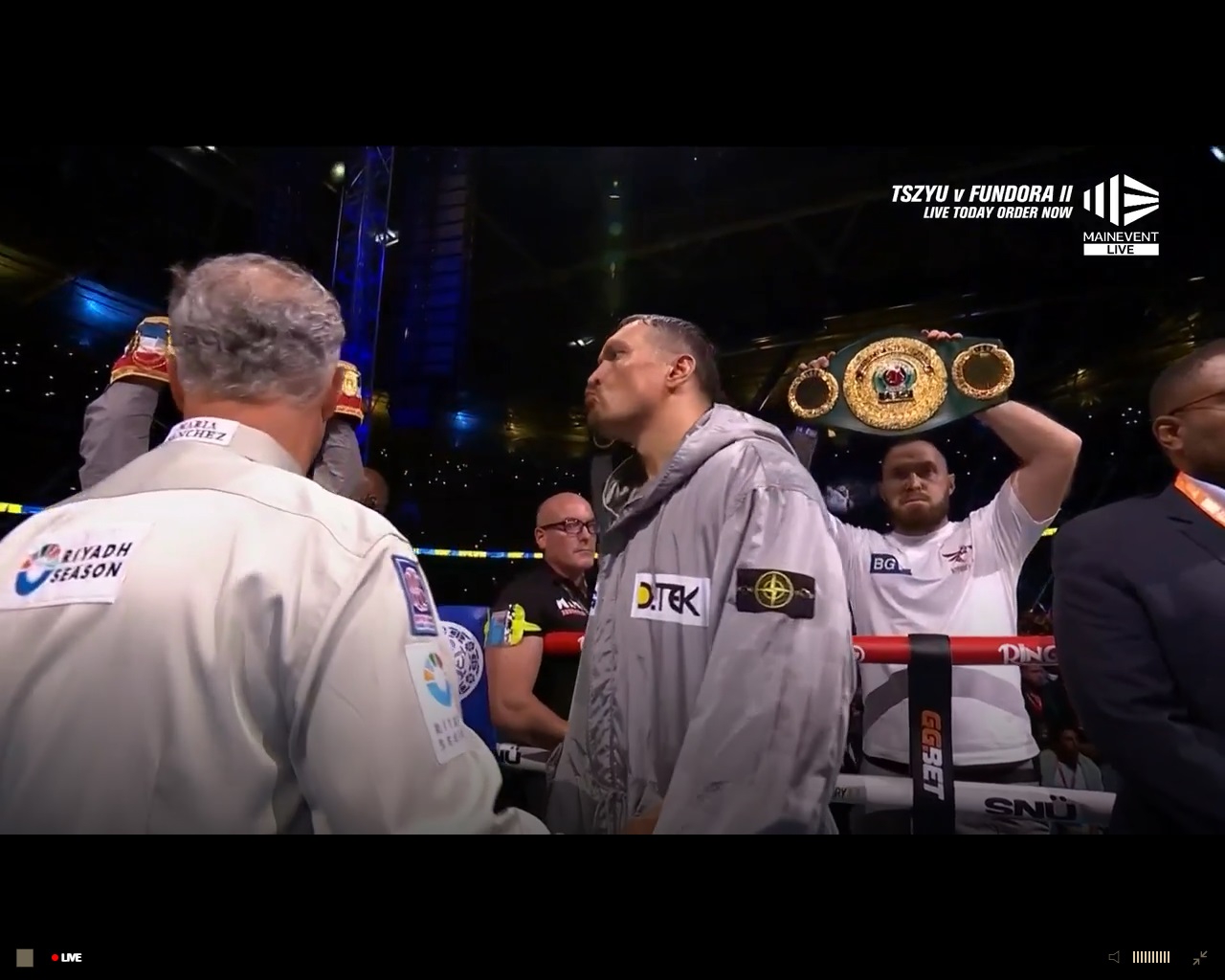 Как бы бой не закончился, усик уже всё равно доказал, что он величайший боксёр в своих весовых категориях в истории. Он тупо прошёл этот вид спорта. Олимпийский чемпион, абсолют в двух весовых, ещё и в таком возрасте