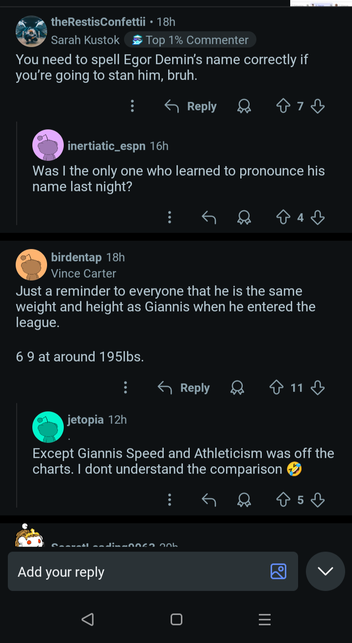 Дёмину везёт, что пропускает предсезонку. Траоре показывает, насколько он далёк от НБА. Шараф чисто европейский запасной пг. Вот Вульф тема, перспективно выглядит еврейский Йокич. На таком безрыбье либо Кум Томас станет плеймейкером, либо Егорка заиграет рано или поздно. Другой вопрос, чё у Егора там со стопой, фасициит или как его там, насколько это плохо, а то поедет в Уникс через пару лет.