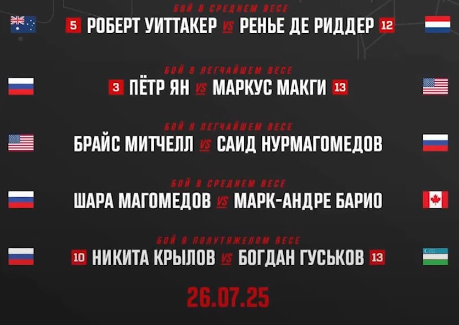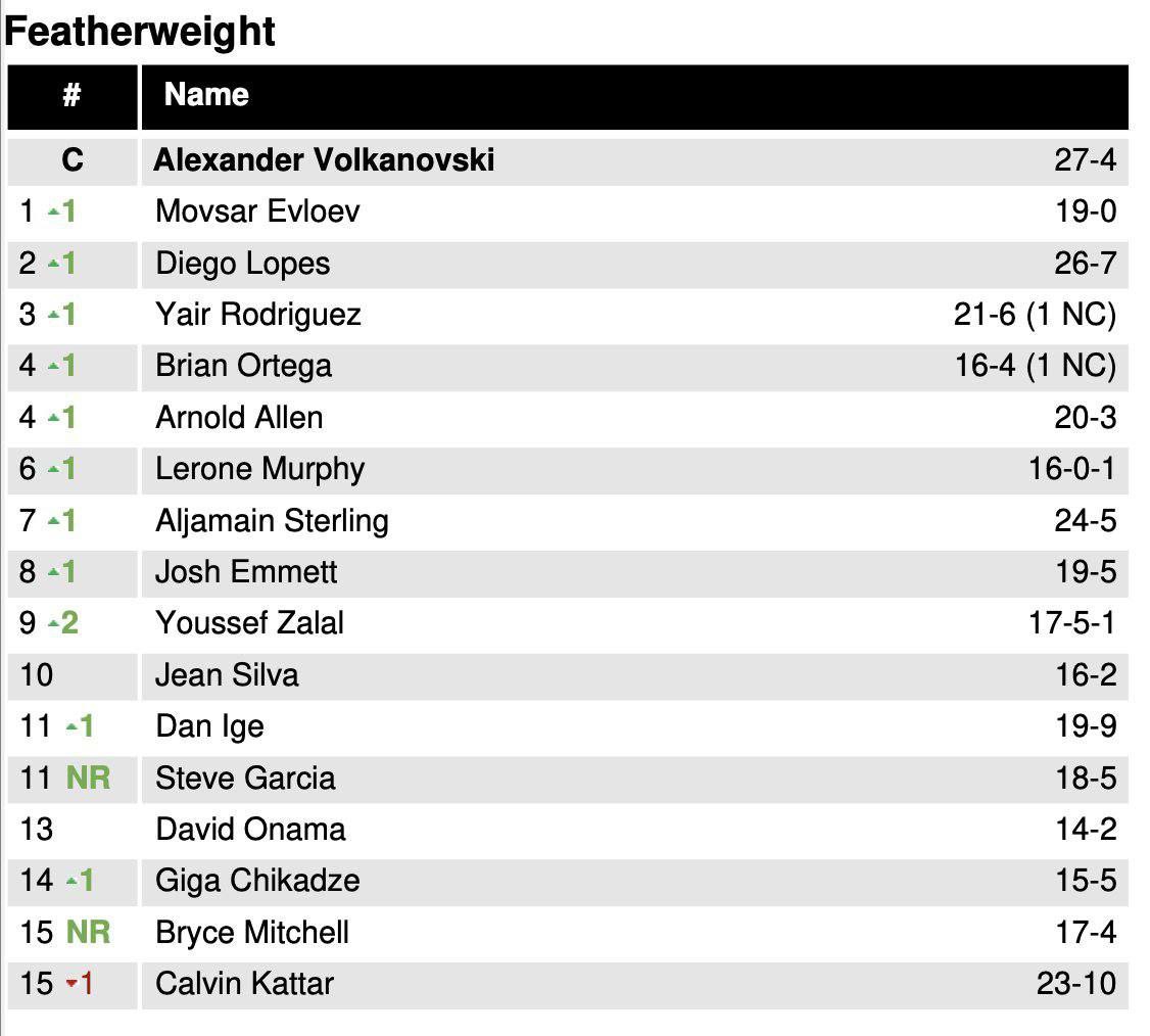 По многочисленным просьбам я сокращу количество спойлеров. 170 сам по себе отличный дивизион не требующий особой коррекции, просто сейчас почему-то все топовые и не только бойцы застыли и ничего интересного не происходит. ч.Джек Делла Мадалена-в.рИслам Махачев: достаточно очевидно, 1.Белал Мухаммед-6.Иан Мачадо Гэрри: оба претенденты, что проиграли свой шанс на титульник и после одной победы новый шанс им не грозит. Избавимся хотя бы от одного. 2.Шон Брейди-5.Камару Усман: претенденский. 3.Шавкат Рахманов-не хочет драться, хочет ждать титульника, наказан. 4.Леон Эдвардс-7.Майкл Моралез: дадим Леону наконец-то ударника, пушим молодого и перспективного, 8.Хоакин Бакли-победитель 11.Джефф Нил/12.Карлос Пратез, 9.Колби Ковингтон-13.Кевин Холланд, единственный бой у которого есть шанс быть принятым Колби, Я знаю, что у Кевина бой с Д-родом, мы так же узнаем, что он его разносит, 10.Гилберт Бёрнс-в.рДжейк Мафьюз, 14.Габриэл Бонфирм-в.рРенди Браун, 15.Майкл Пейдж-нахуя он всё ещё в рейтинге 170 ? У челика второй бой в 185, к чему это ? Ждут пока Косту из рейтинга выпезднут ? Клоунада какая-то. в.р.Майкл Киеса-победитель в.рРенат Файхрединов/в.рАндреас Густафферсон, в.рНиколас Далби-в.р.Ли Жинглиянь, как раз на Шанхай, в.рДжакобе Смит-в.р.Кхаос Вильямс, в.р.Фил Роу-в.р.Гуннар Нельсон, По интересным бойцам вроде всё. Мнения ? Вопросы ?