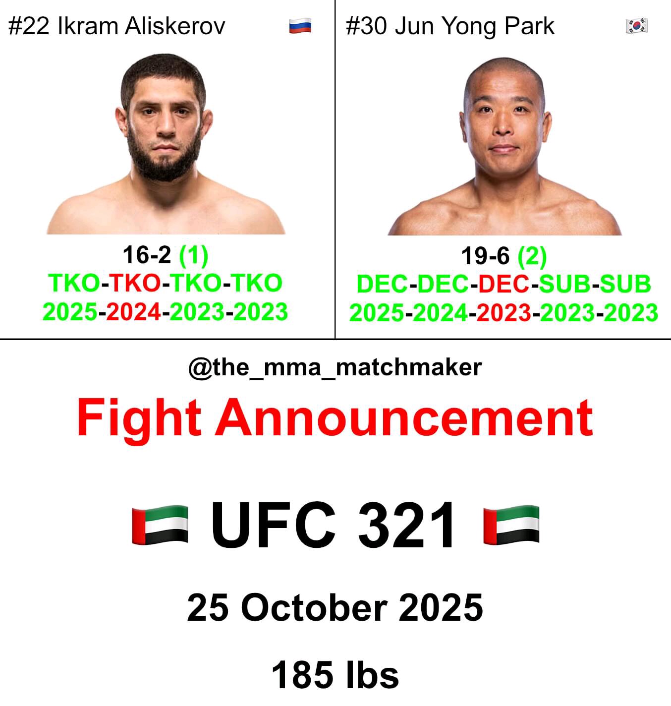 >>3230375 Единственный оставшийся кард в Абу-Даби - это номерной через 3 месяца. Не будет Ян через 3 месяца после боя выходить против Умарки, тем более, как он ломается постоянно.