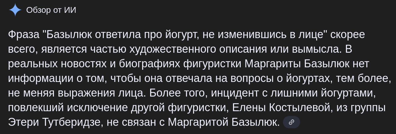 Правда в том, что если ты не можешь не изменившись в лице ответить на вопрос про йогурт так, словно знала, что однажды его зададут, то это заставляет задуматься о мире, в котором мы живём. О наших кумирах и ценностях. :kostorka22: