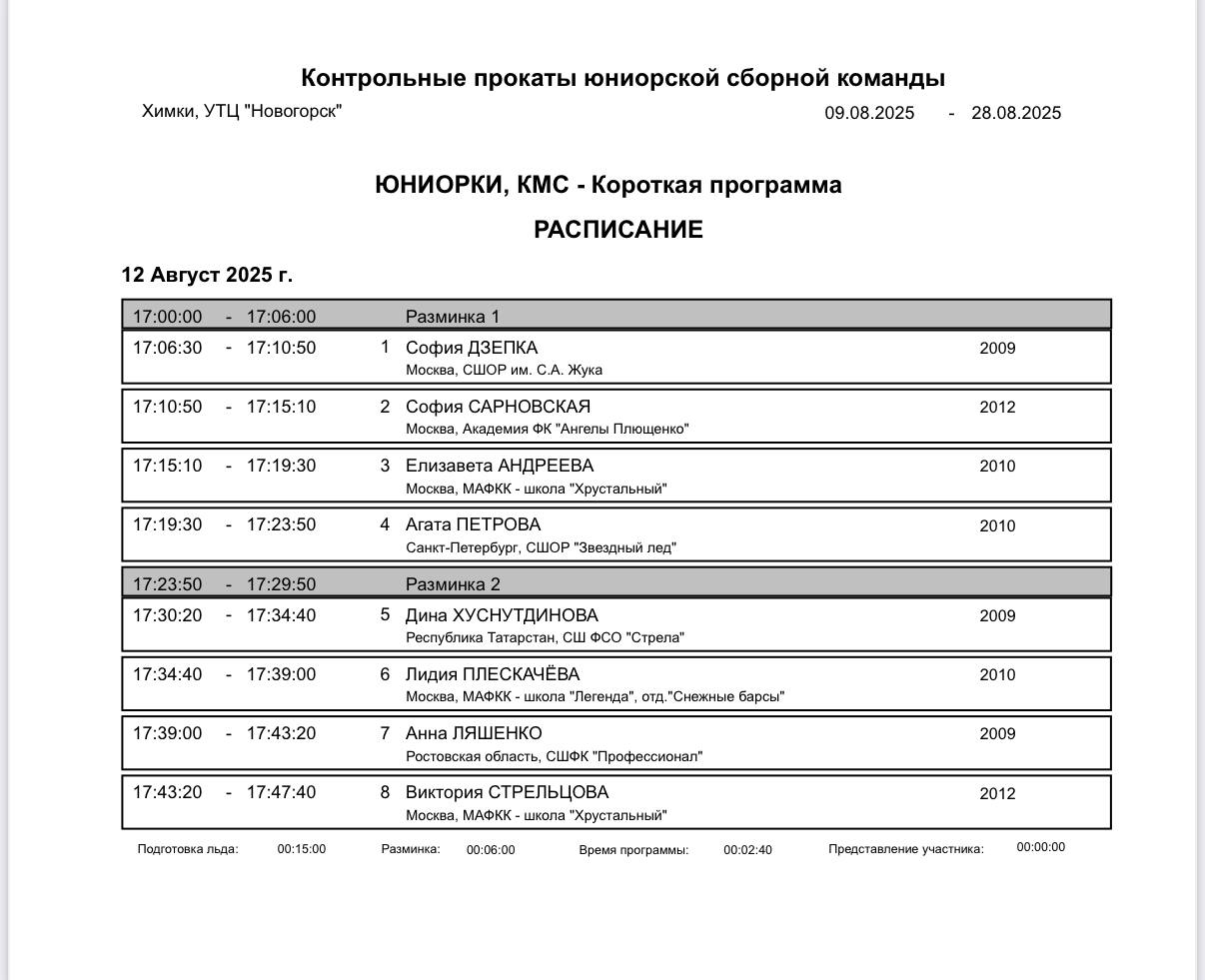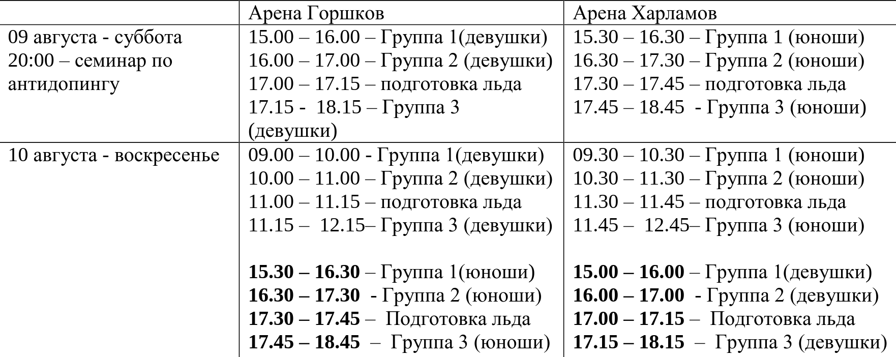 12 августа 15:00-16:45 – Юноши произвольная программа 17:00-18:45 – Девушки короткая программа По окончании разбор коротких программ со специалистами (девушки)