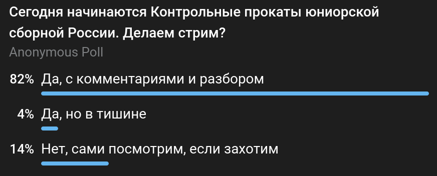 >>3232996 Комментатор, особенно на контрольных прокатах, вообще не нужен. Что доказала технически поганая трансляция средствами ФФККР из Новогорска в ковидный год, когда первый канал вообще не стал заморачиваться и везти туда оборудование с персоналом.