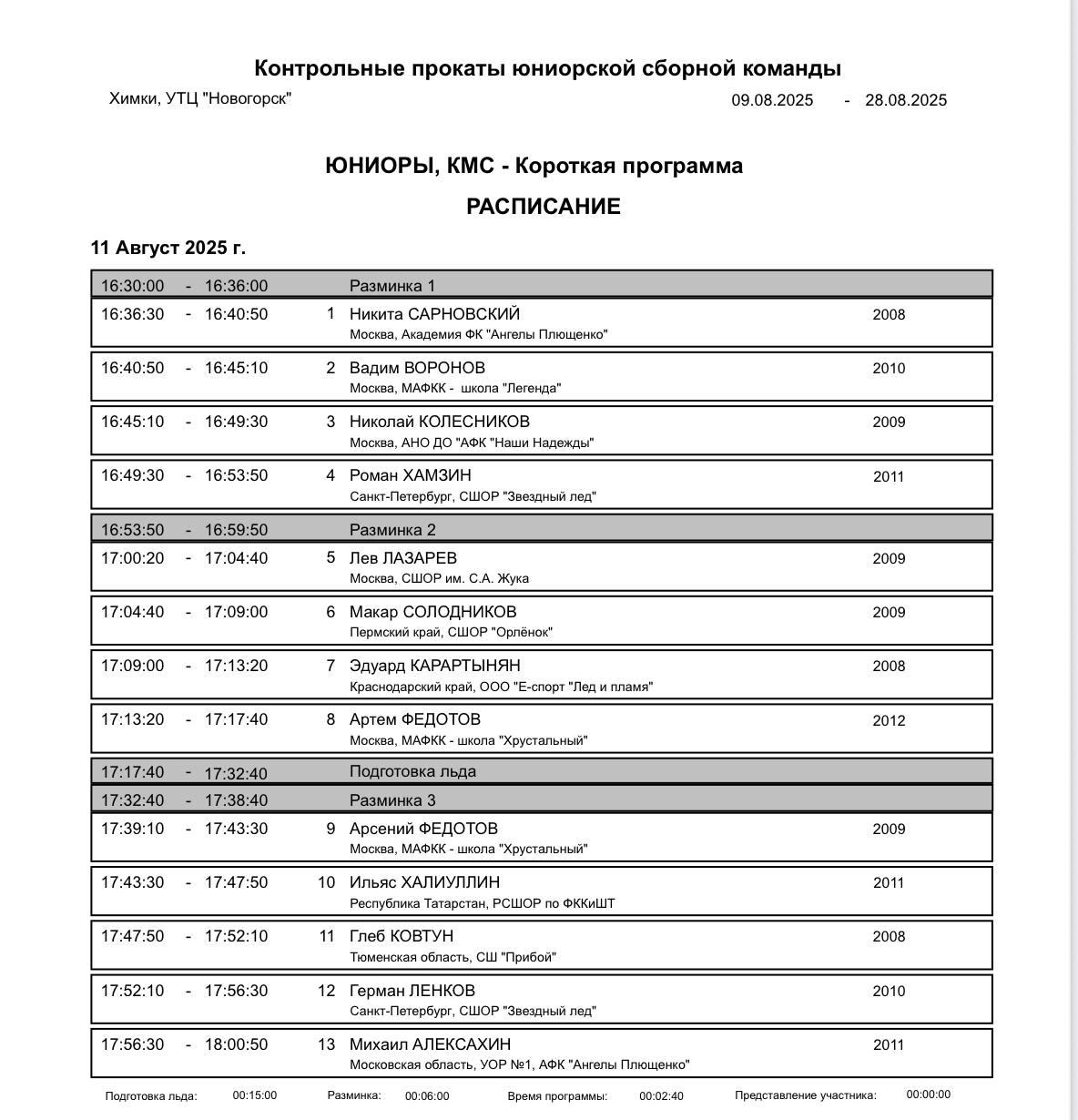 11 августа 16.30-18.00 – Юноши короткая программа По окончании разбор коротких программ со специалистами (юноши)