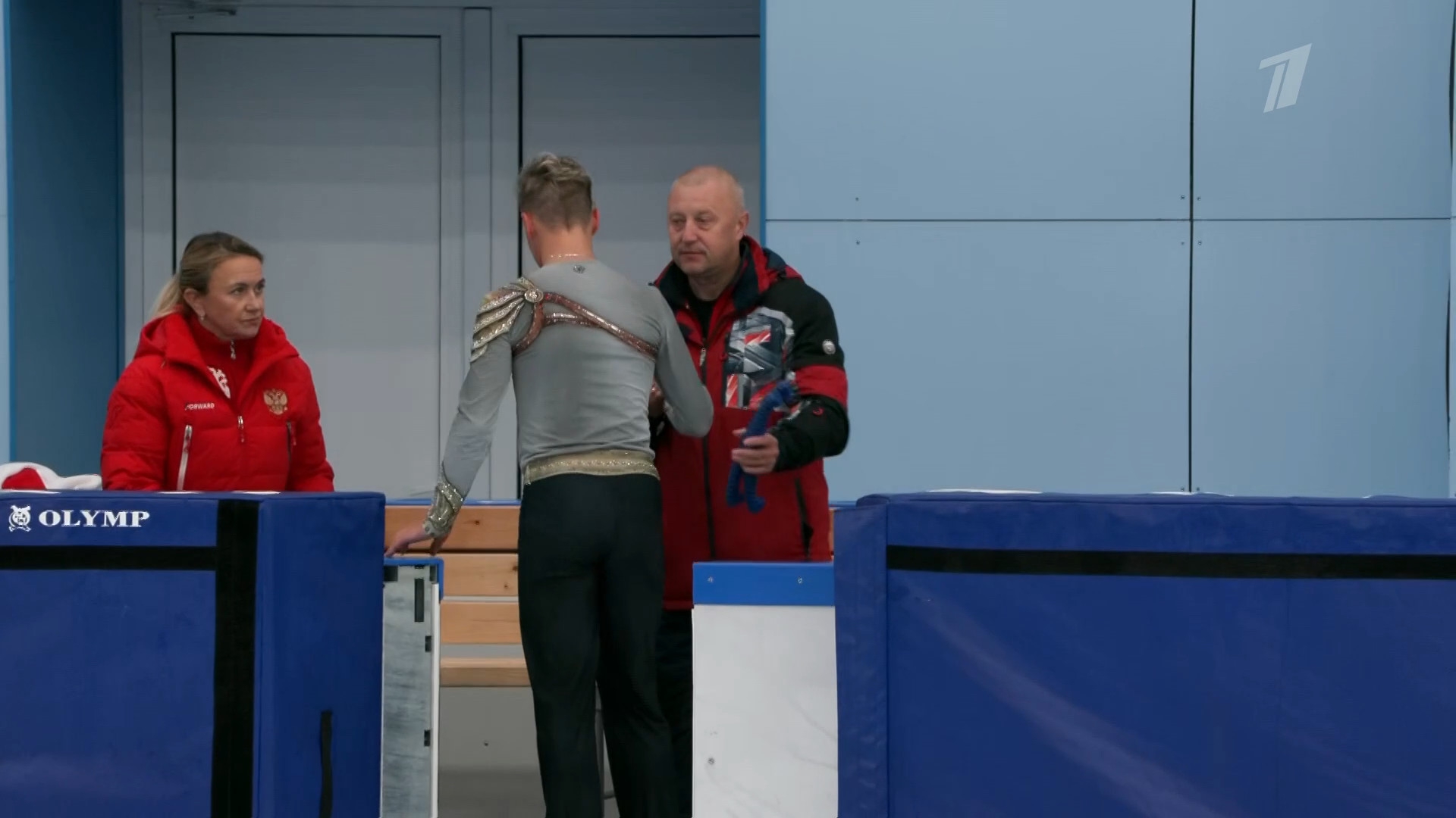 София Сарновская, с Плющенко, Значковым и Алексеевым прошлогоднее платье Лебединая песня - и программа 3r 2a разогналась на 3z ho 1t Панова разговаривает с бабкой в кепке.