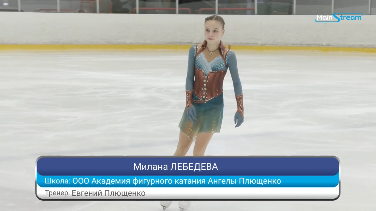 Милана Петровна ЛЕБЕДЕВА ООО Академия фигурного катания Ангелы Плющенко подъехала к судьям 3s 2a в хв и твизлы 3r с бести-кораблика обозначила микро-гидроблейд 3f!< в хв 3z3t micro-ho 3f2t2r 3z2a<??? wobbling грибочек-комочек chsq1