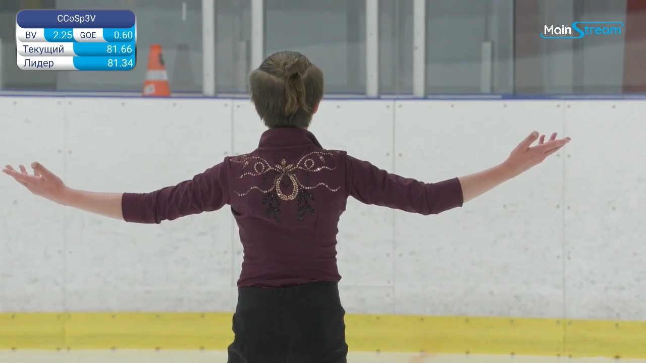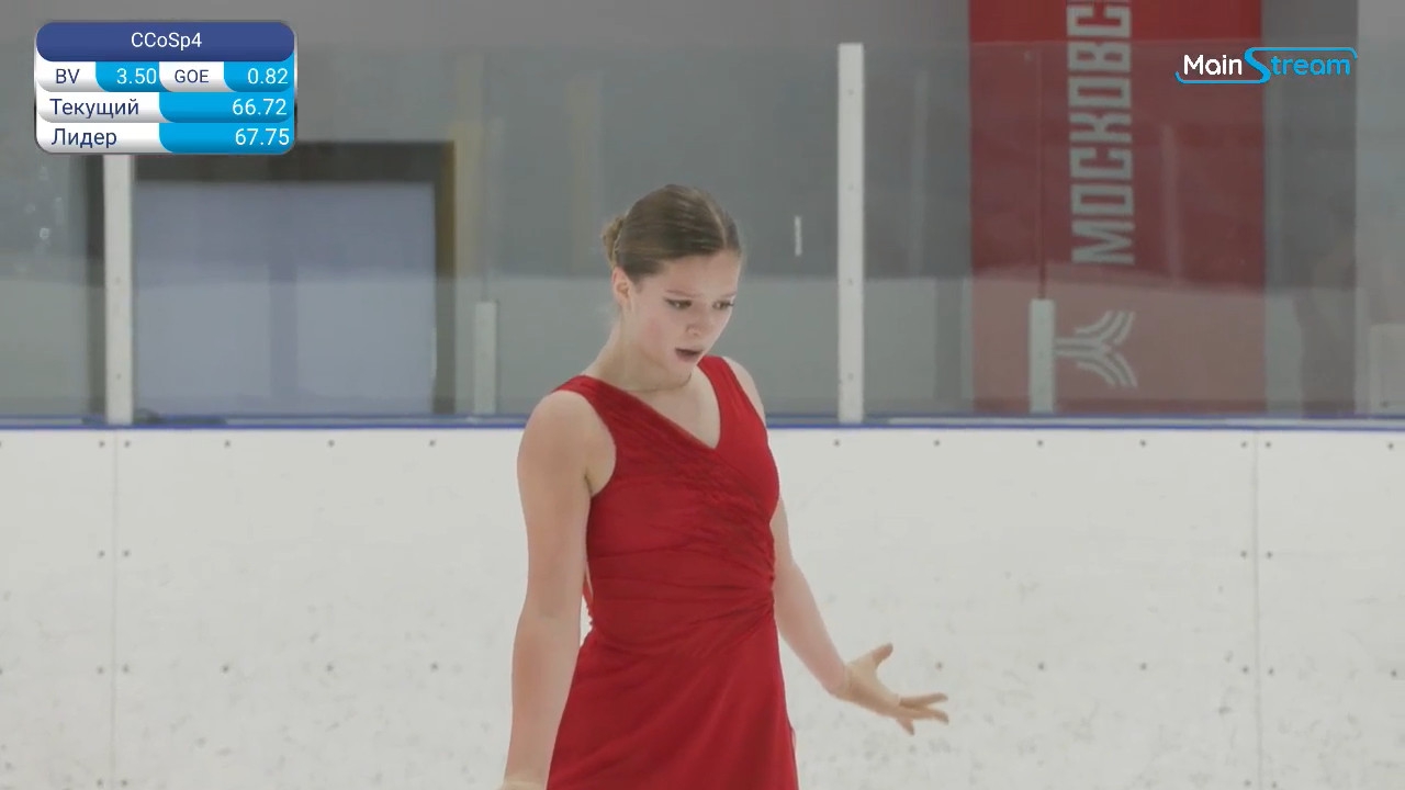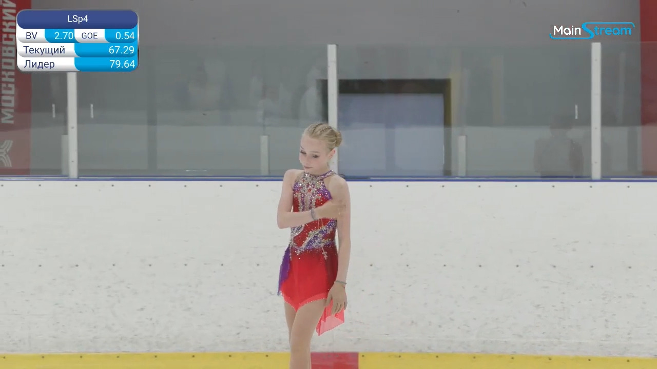 Милана Петровна ЛЕБЕДЕВА, 15 лет (29 июня 2010) ООО Академия фигурного катания Ангелы Плющенко в бордовом, французская хтонь (aka BULLSHIT LIMONADE MUSIC) 3r прыжок в шпагат 2a с кораблика 3zq???3t< stsq3 чуть не успела, школа ЕВ-2, 35.69, потом порезали до 33.32