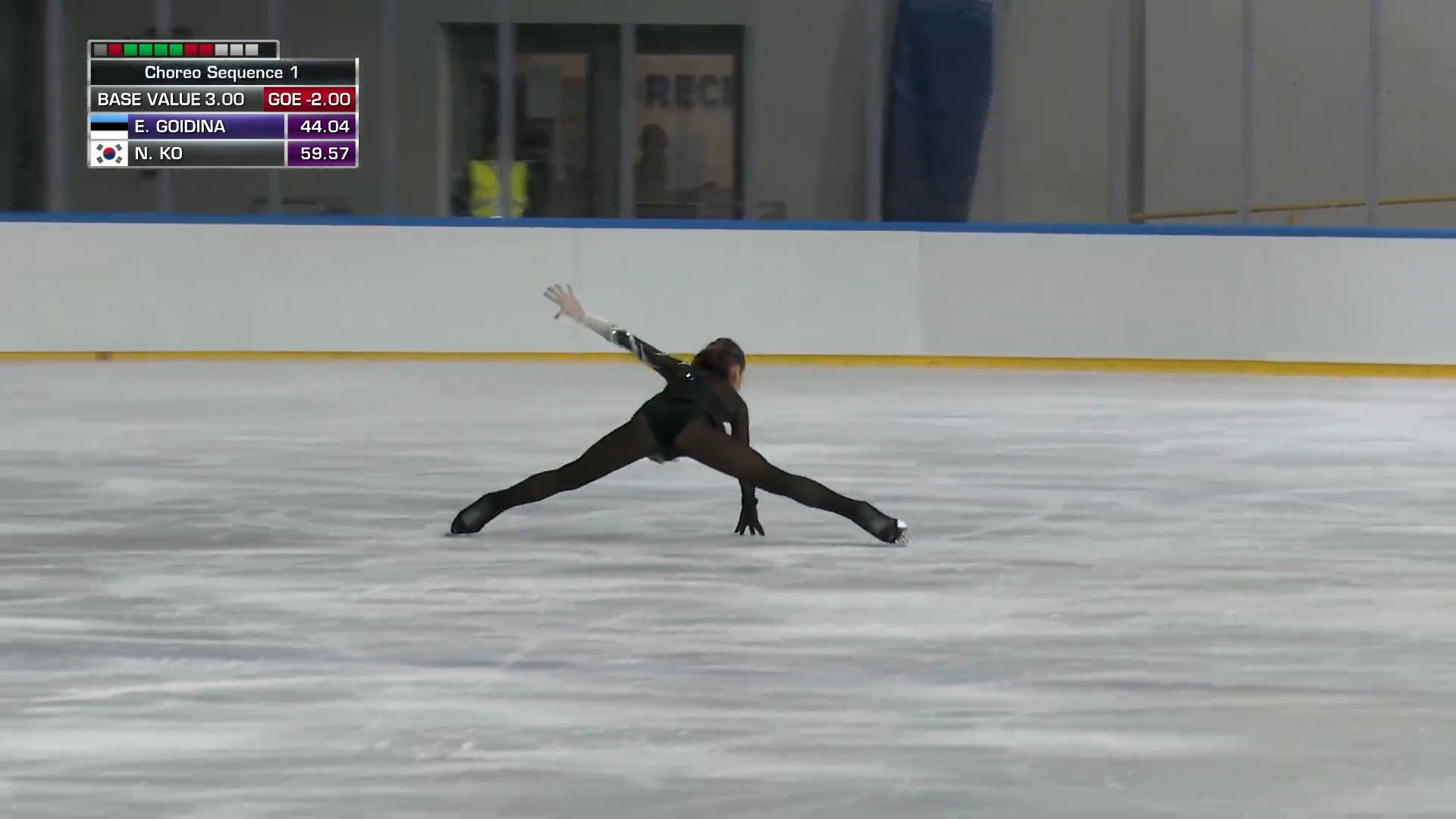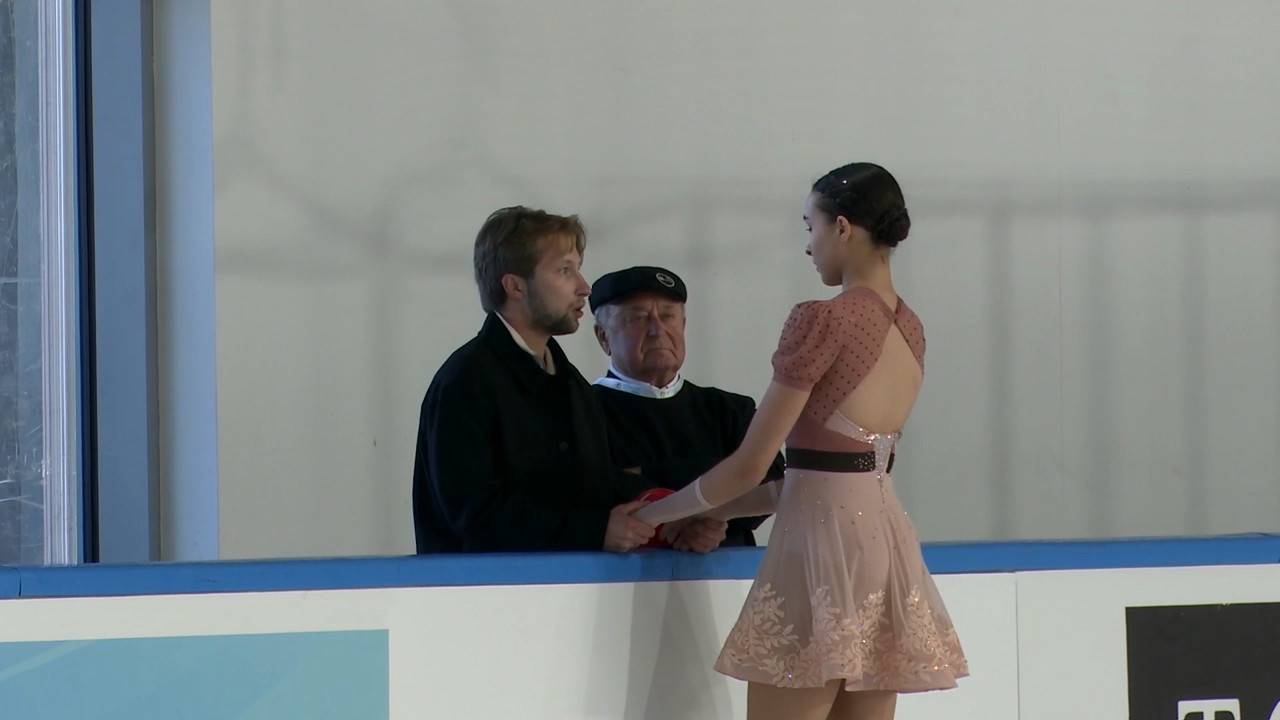 Katerina GERVITZ, 17 лет, первый ГП начинает у борта начинает с вращений - обычно это не к добру, плохой знак 3s< ho 2t кантилевер 2r 1a stsq2 с подъездом к борту и маханием ногой