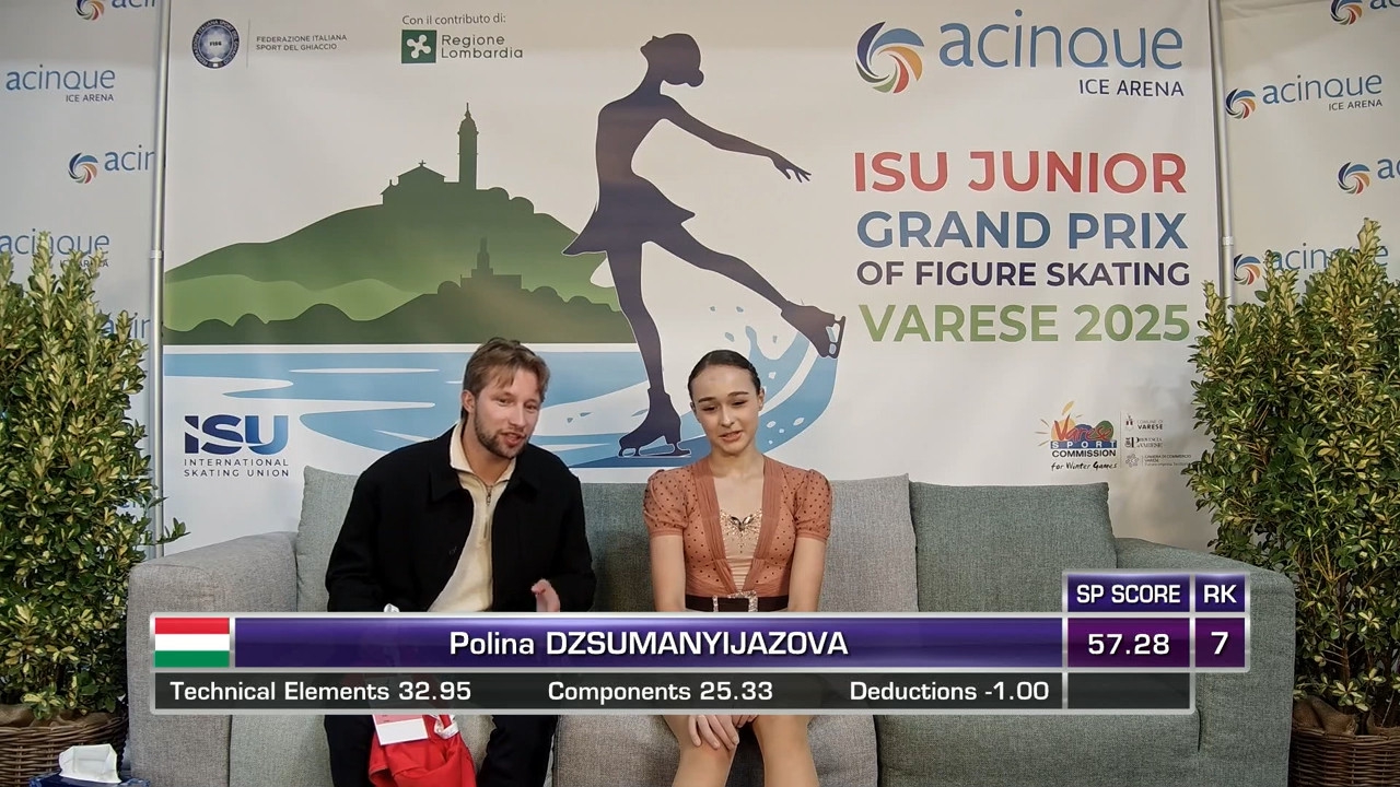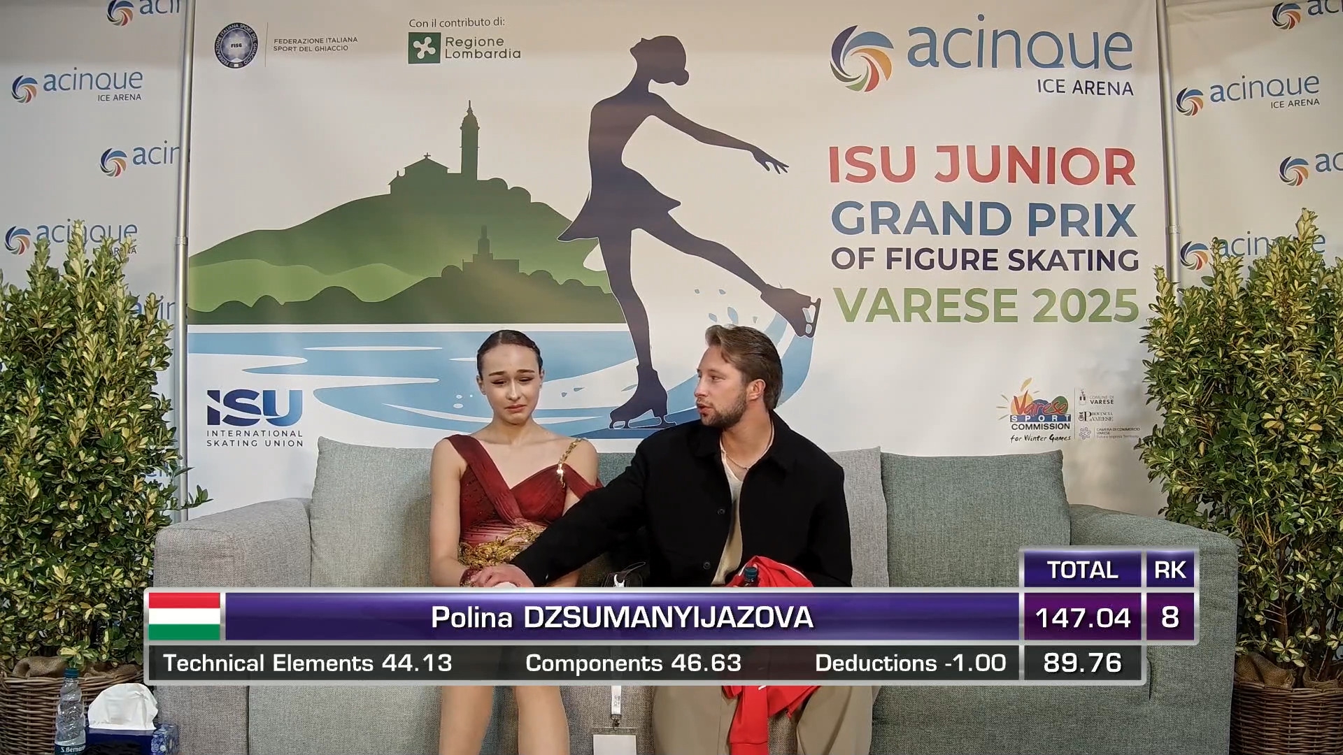 Полина Джуманиязова, 16 лет с Мишиным и Свириденко 2a 3z ho 2t в твизлы 3r 3s< fall - началось стоит посреди катка, узнаю хореографию Мишина 3z2aq wobbling 2t 2r перекрученный 2f 2 ноги chsq1 подскок в мини шпагат всё как обычно короче, либо травма
