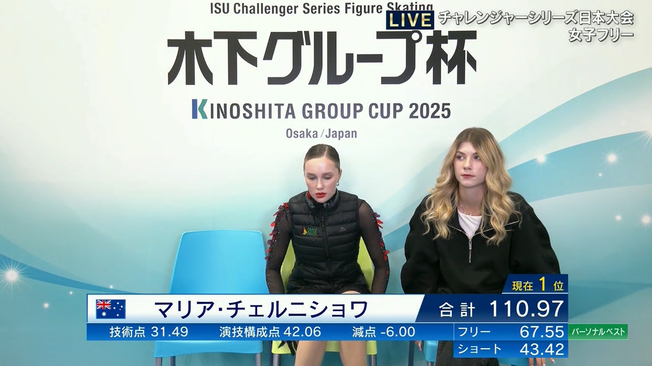 Мария Чернышова, Курган, 20 лет (20.06.2005), Алёна Канышева >previously skated Pairs with Harley Windsor in 2021 and returned to Single Skating after the partnership ended. Ещё одна Курганская парница-одиночница. сейчас получит дедакшн за задержку 3t fall 3f< fall школа Камышка 3r< fall 2a на 2 ноги/so совершенное отсутствие воли к борьбе stsq2 3r<? so 2 ноги +rep 3s< fall 2a<1e2f так и хочется поставить q chsq1 34.48