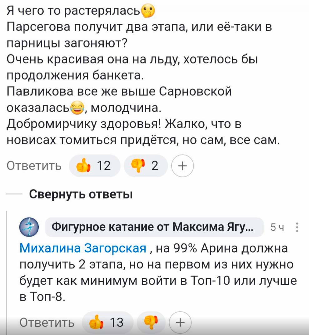 Мне, как ньюфагу, не интересующемуся фека и не смотрящему его, было бы интересно спросить, частое ли это явление, чтобы пары распадались сразу после контрольных прокатов. Но я понимаю, что все ИТТ ещё большие ньюфаги, которые ещё меньше интересуются фека и ещё категоричней не смотрят его. Никто ничего не знает. Толковых ответов мне ждать не следует. :kostorka4: