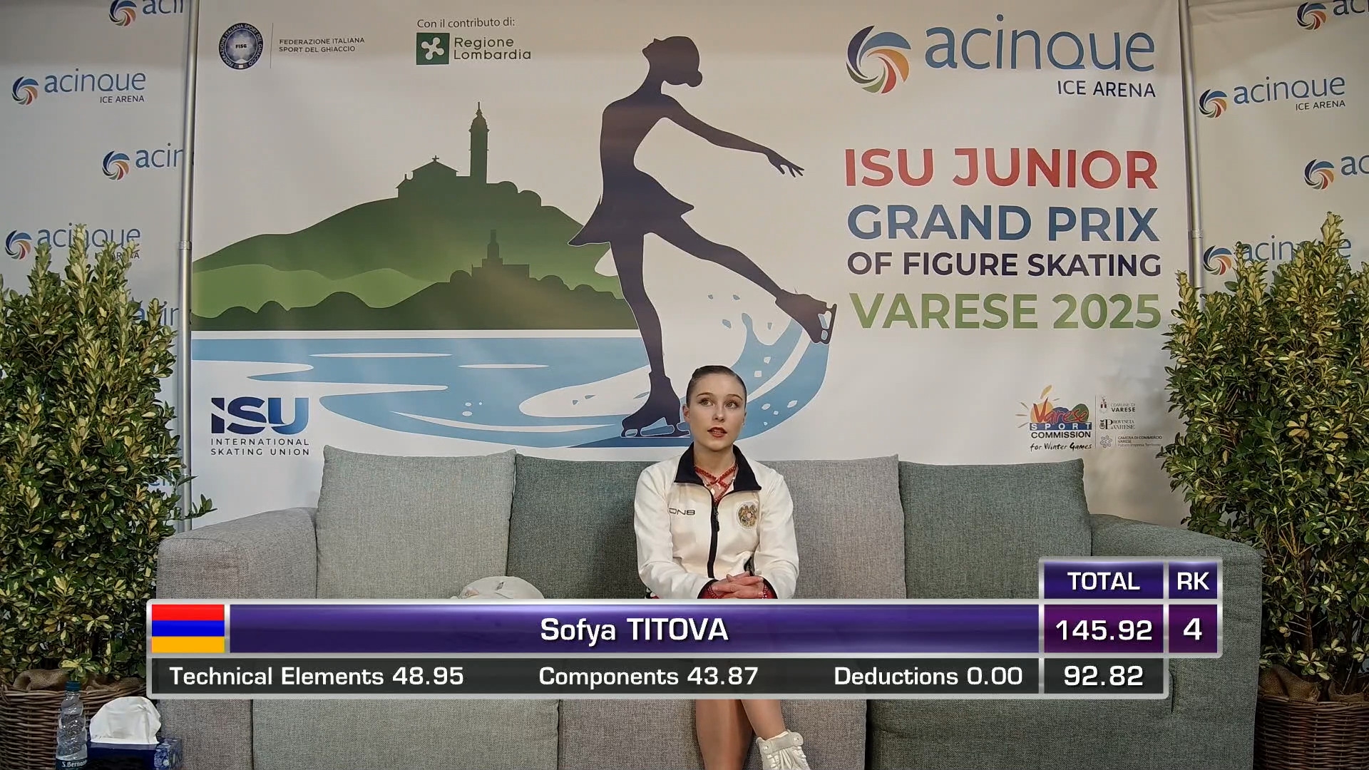 София Титова, 16 лет >Former Coach: Irina Nifontova, Etery Tutberidze >тИтова нарывается на дедашкн за задержку 2a 3zeq?2t2r 3rq? 3s< какой-то отдых посреди катка 3f2t 2f 3s2r первый в недокрут лёгкий типа q, как и полагается армянская прыжковая школа известна в мире chsq1 разбег-прыжок, езда по льду, тренера нет