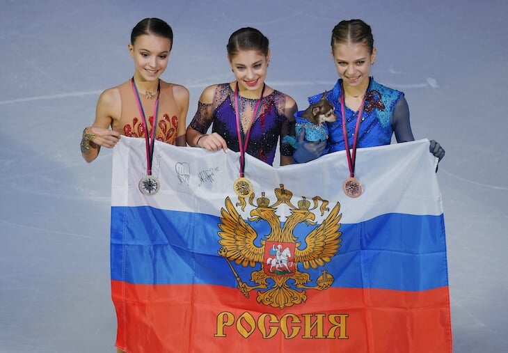 Почему Сарновская даже на фото с гораздо более старшим её тренером выглядит самой прожжённой? Почему-то когда я вижу её на фото с мужем Липницкой, я не могу отделаться от ассоциации с козлом, ведущим овец на убой. Можно было бы на секунду усомнится в распределении ролей, но их выражения лиц не оставляют никаких сомнений. Это такой мрачный, сардонический, смеющийся взгляд, как бы говорящий: "я-то, конечно, как всегда останусь невредимой, но вот вам всем пизда, бедняжки". При этом овцы явно принимают её за свою и не понимают разделяющей их пропасти.