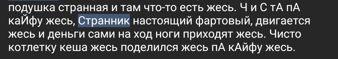 >>3245243 И? Это я описывал моменты серии альфреалити и что страннику повезло с баблом. Разве не так? Типа он нашел бабло двойное и по кайфу отдал братку на ход ноги? Где тут поддержка его в бою? Если против кувалды и шилова, так всех поддержу кто их запиздит.