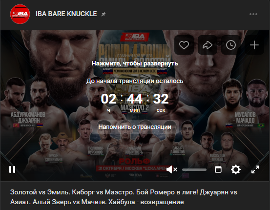>>3255023 Фара - Странник. Победа Фары нокаутом. Внезапно. Байра - Раха. Победа Рахи по очкам. Юсупов - Пулемётчик. Победа Юсупова ввиду отказа угла Пулемётчика или многочисленных падений. Никулин - Кулмаганбетов. Победа Кулмаганбетова досрочно после нескольких ноедаунов