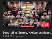 >>3243026 Тарабрин - Алый зверь. Победа Алого зверя по очкам. Букин - Бисултанов. Победа Бисултанова по очкам. Мусалов - Мачадо. Победа Мусалова нокаутом. Классика бразильских мешков. Абдурахманов - Джуарян. Победа Абдурахманова по очкам. Спорное решение. Киборг - Маэстро. Победа Киборга по очкам. Экшен. Отвёрнутые камеры. Эмиль - Золотой. Победа Золотого по очкам.