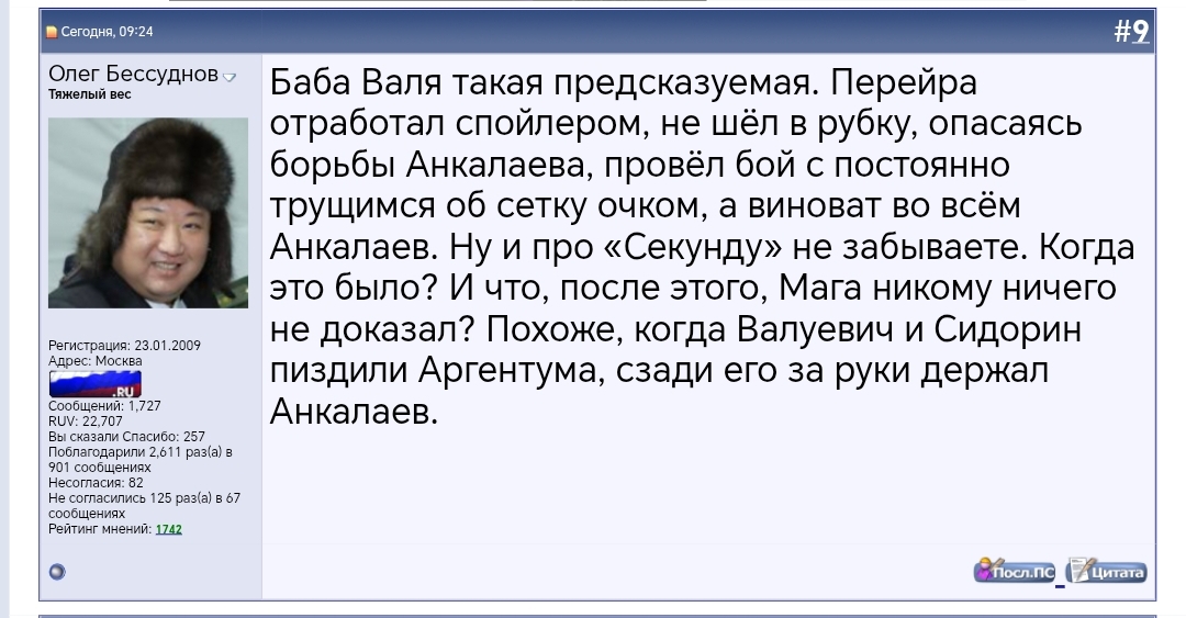 >>3243508 Да все он знает. Это как в видосах например специально что-то неправильно говорят/пишут и каждый второй коммент про это в итоге. Так и тут. Кому не похуй, что Анкалаев (ну или некто с аккаунта Анкалаева) пукнул, что вырубит Перейру? Ну вырубит и вырубит. А вот то что в нокдауне не был каждый второй возразит.