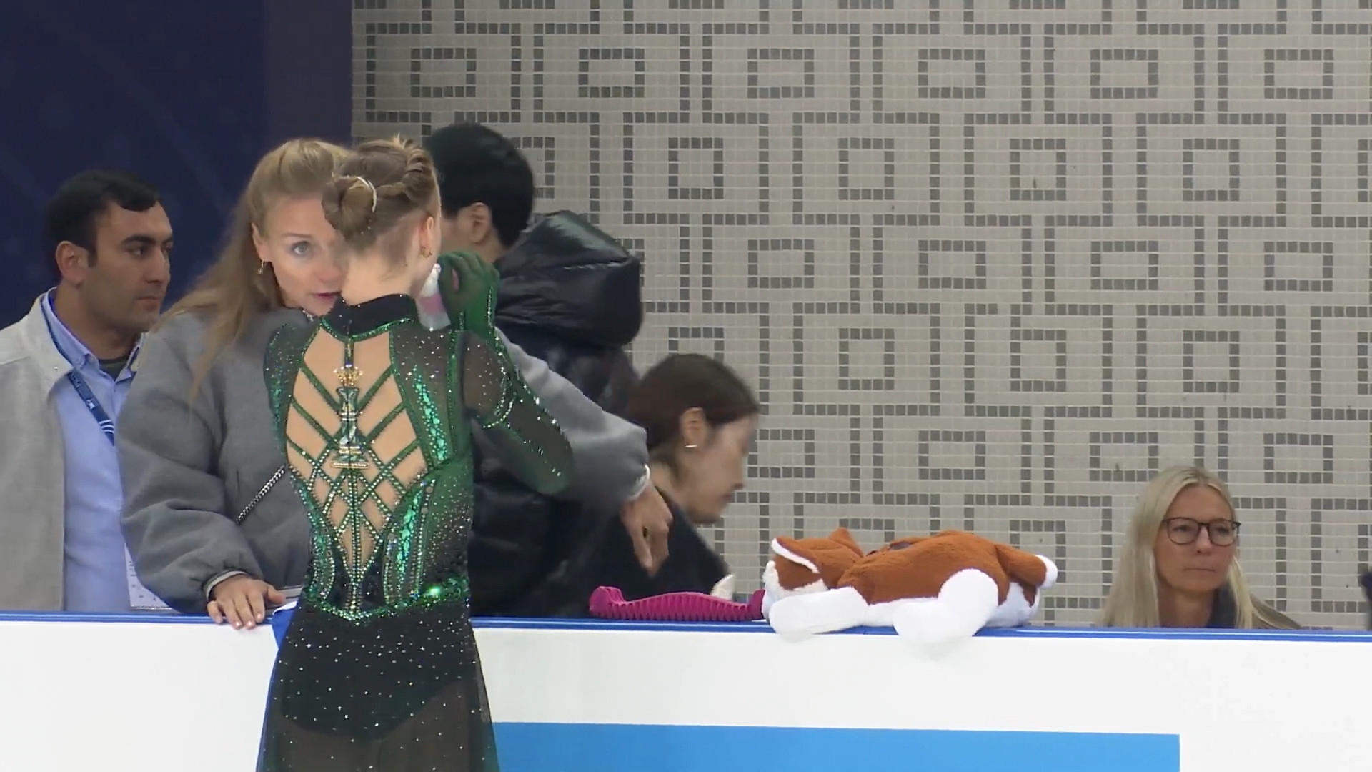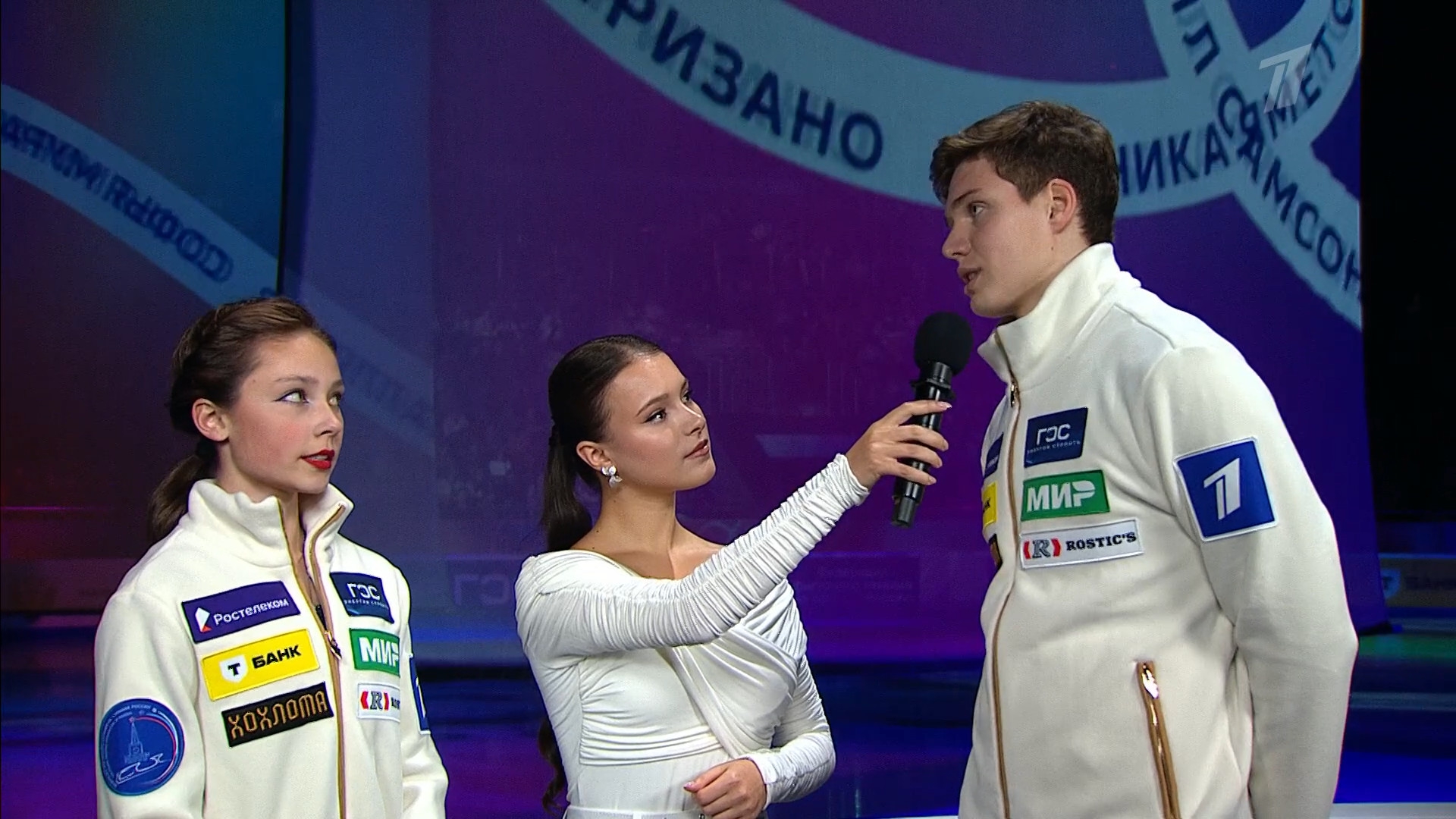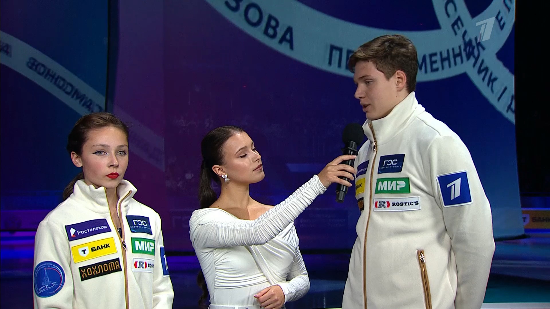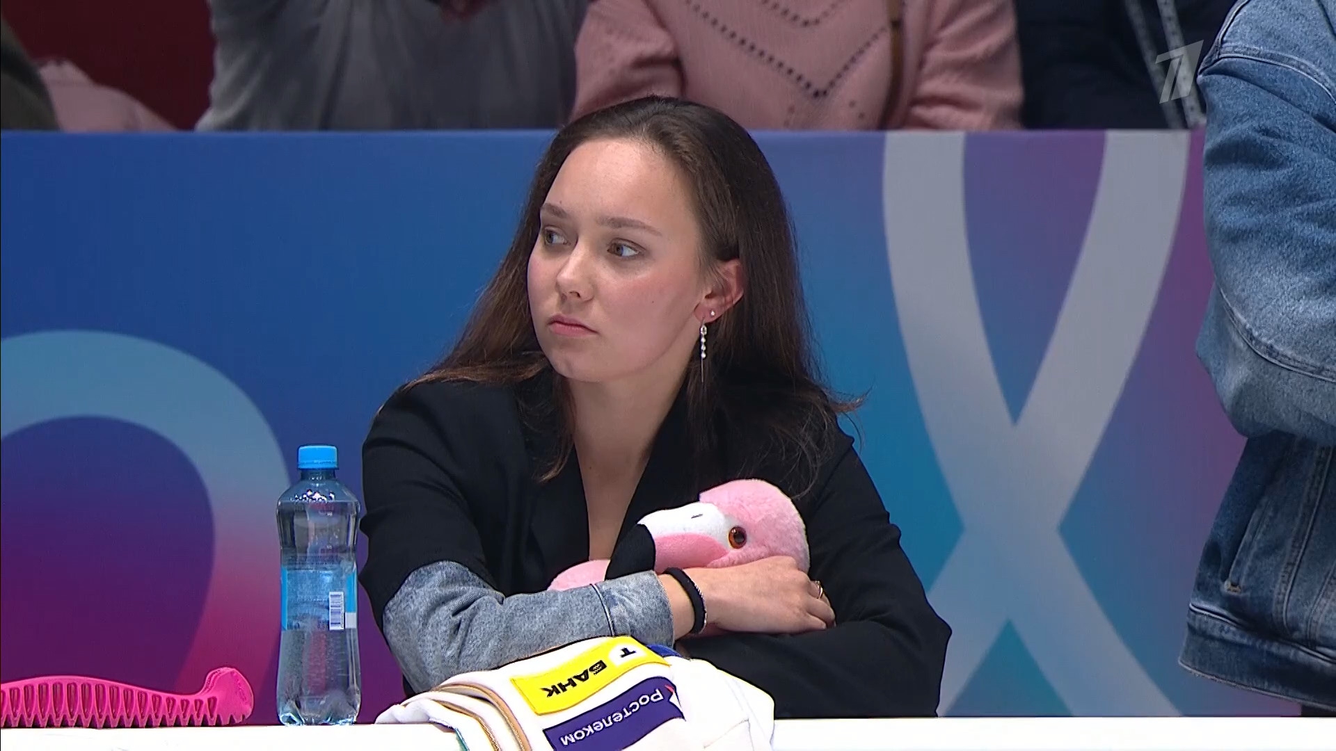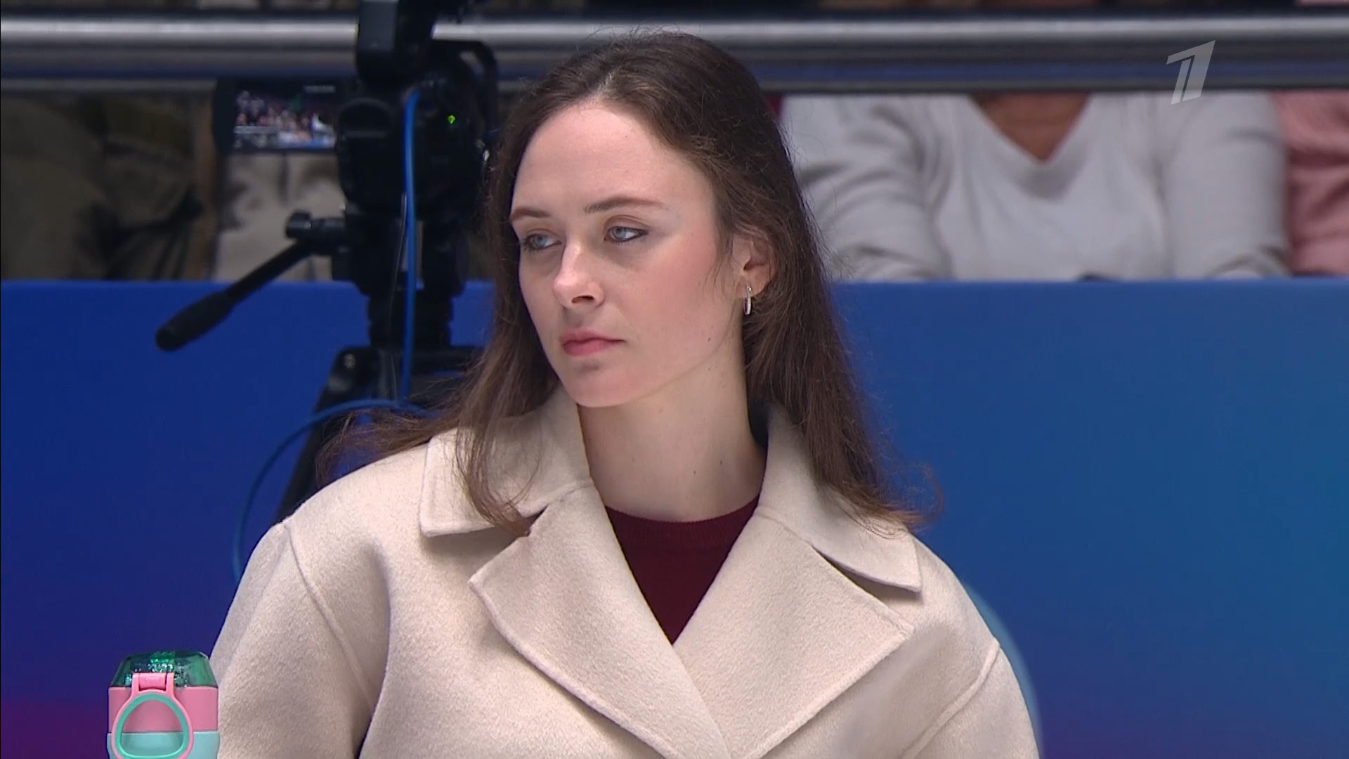 Одна няшка еле откатала свою пп второй раз за день, после чего высунула язык. Вторая няшка выскочила на лёд, ей закричали "куда???!!!" чем рассмешили няшку с микрофоном.