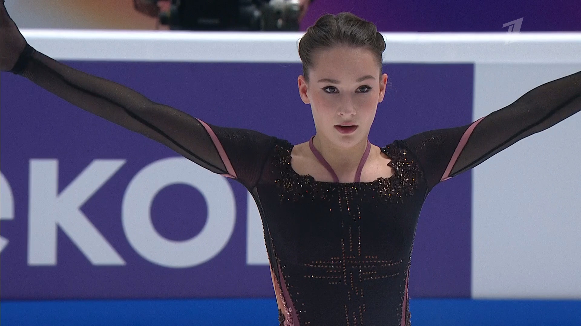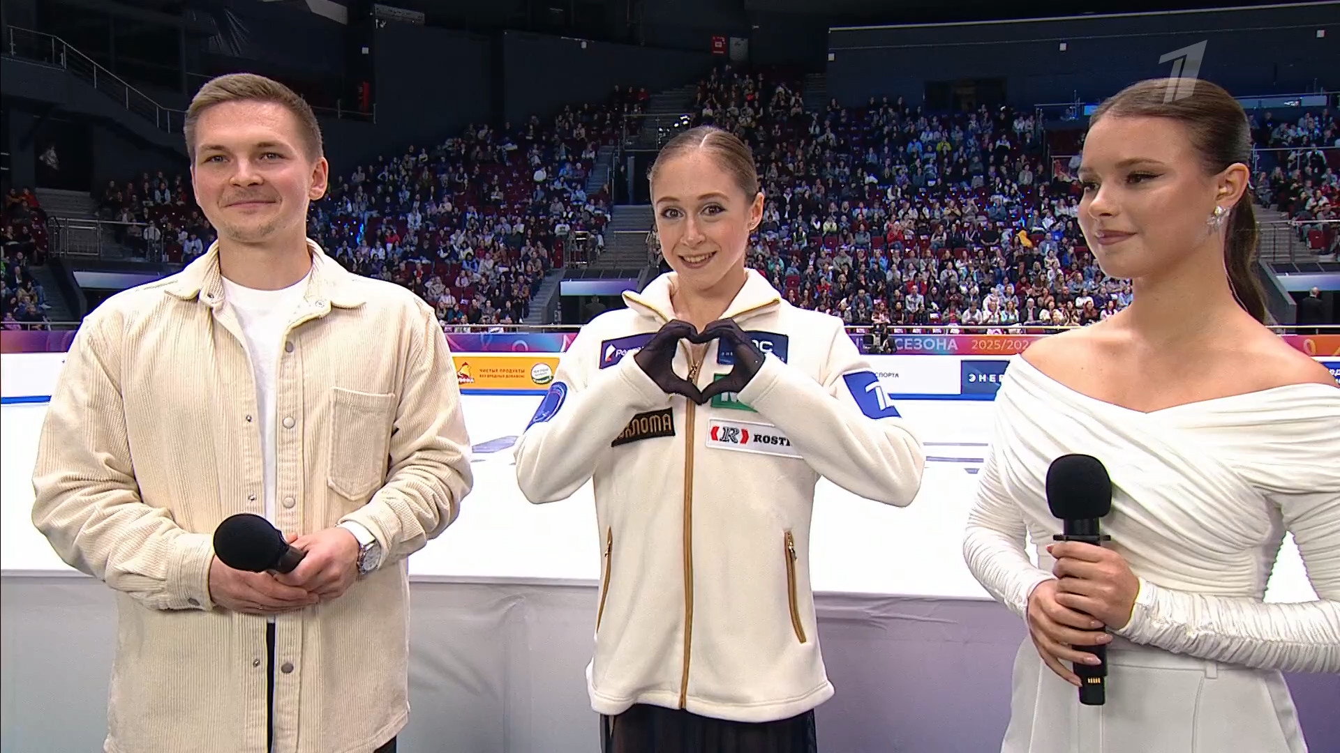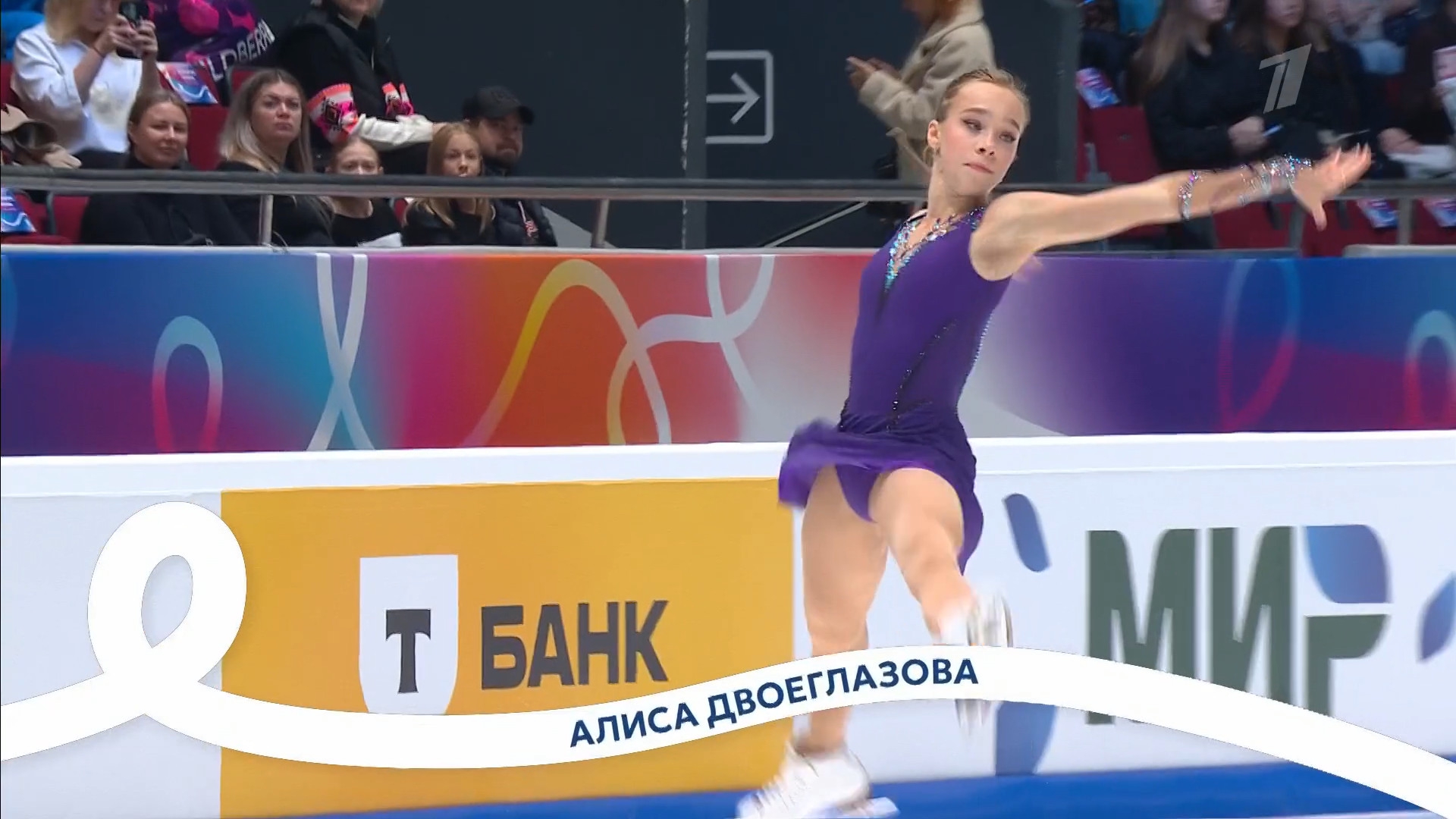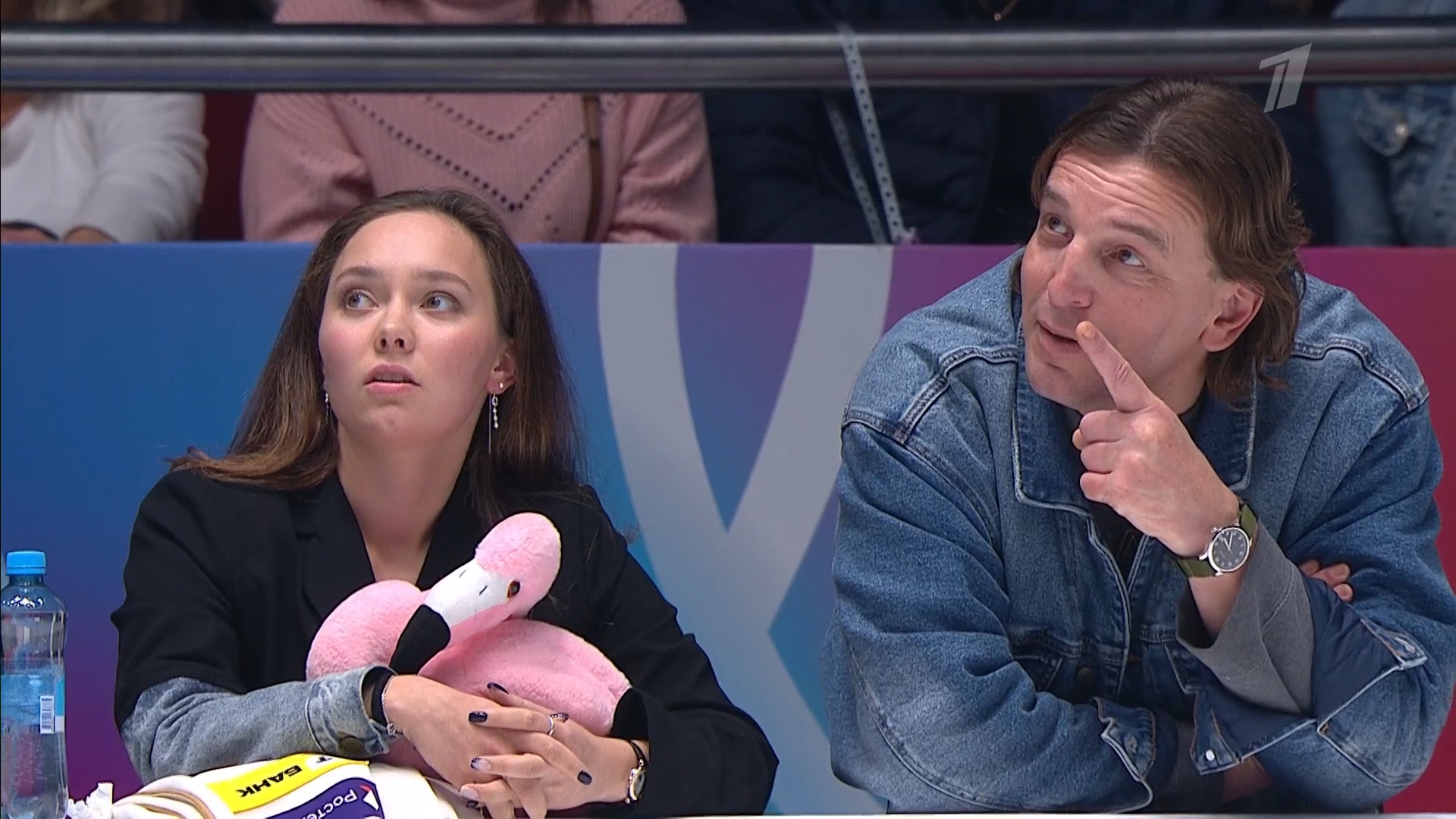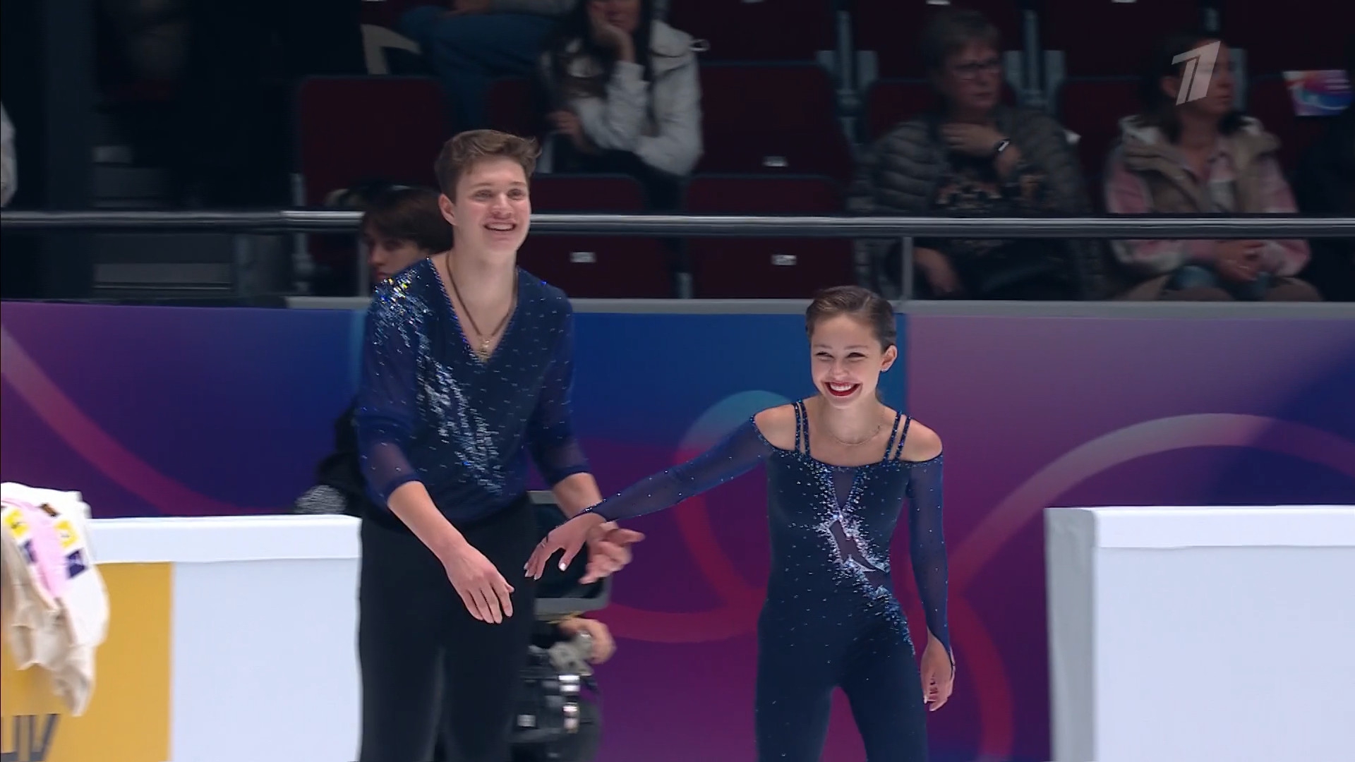 Одна няшка еле откатала свою пп второй раз за день, после чего высунула язык. Вторая няшка выскочила на лёд, ей закричали "куда???!!!" чем рассмешили няшку с микрофоном.