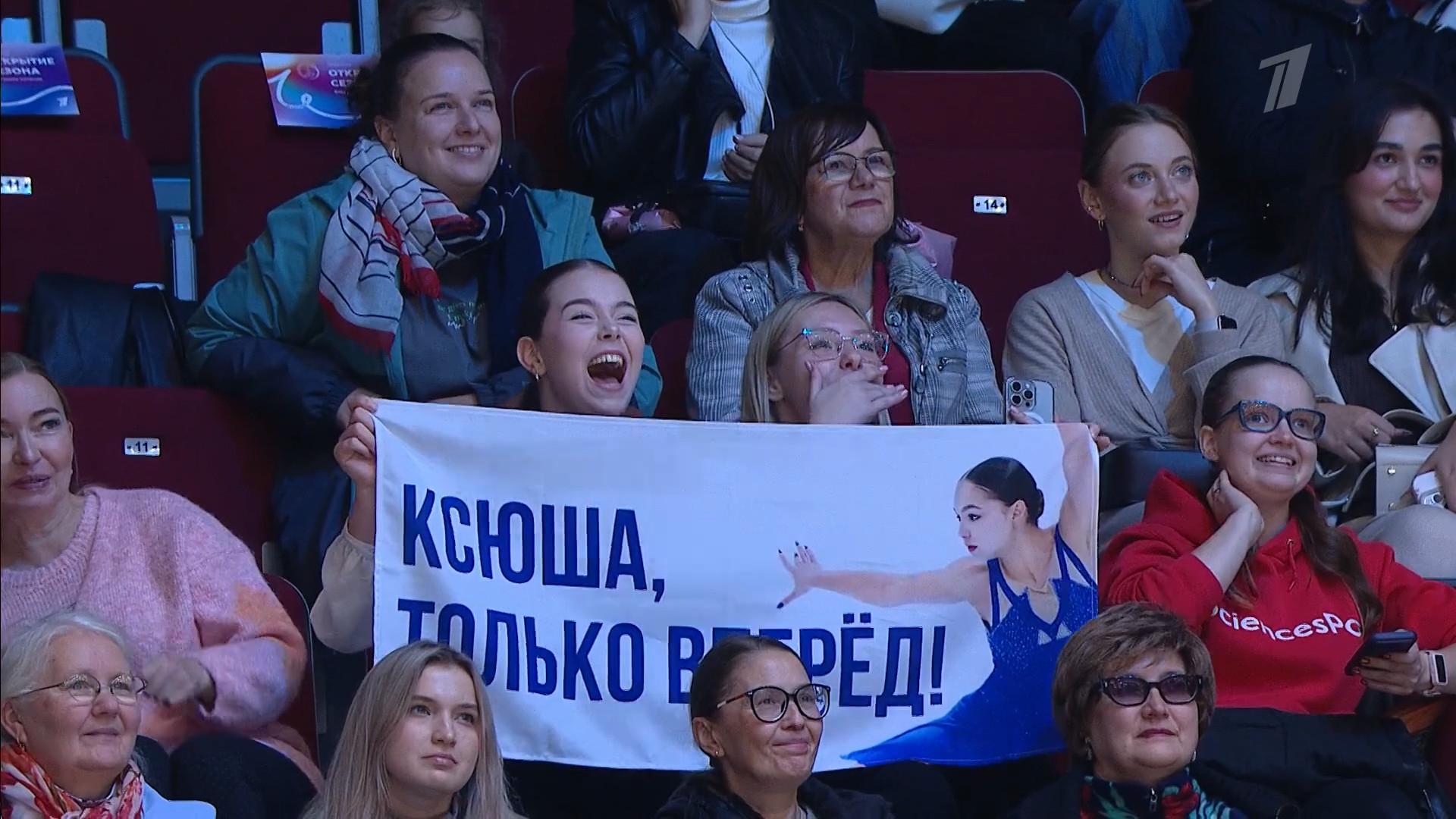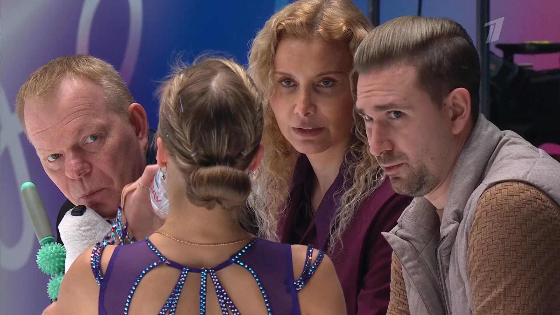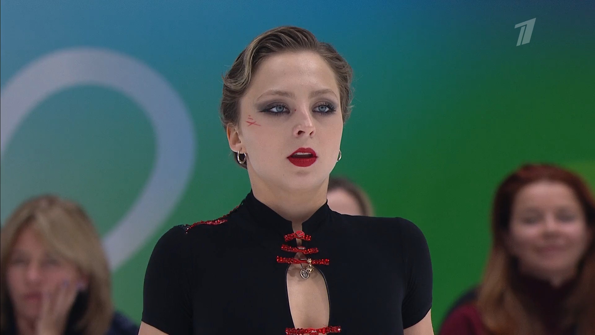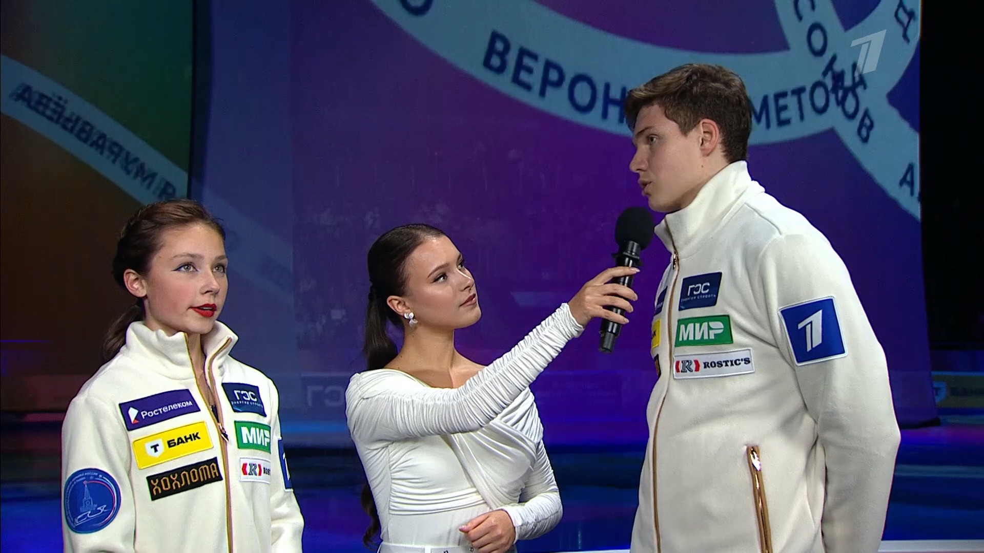 Одна няшка еле откатала свою пп второй раз за день, после чего высунула язык. Вторая няшка выскочила на лёд, ей закричали "куда???!!!" чем рассмешили няшку с микрофоном.