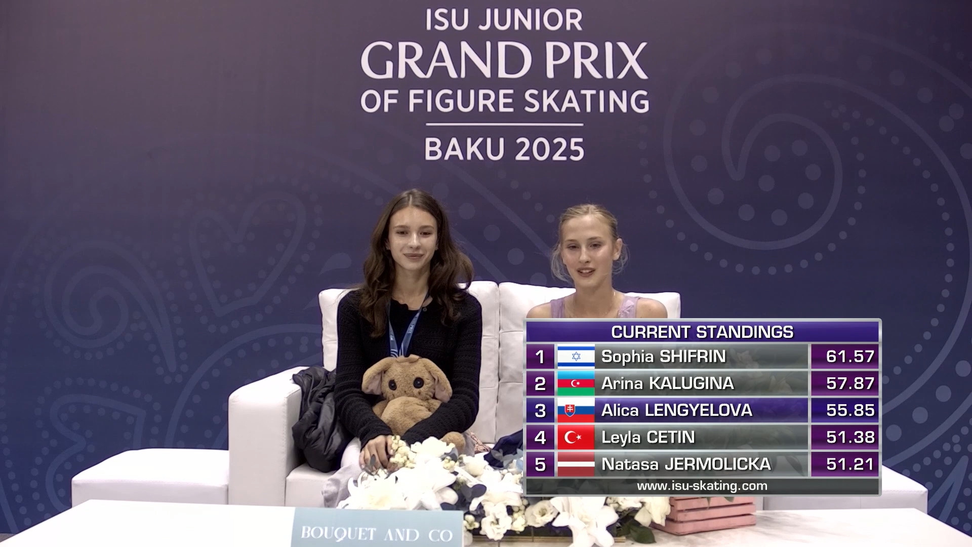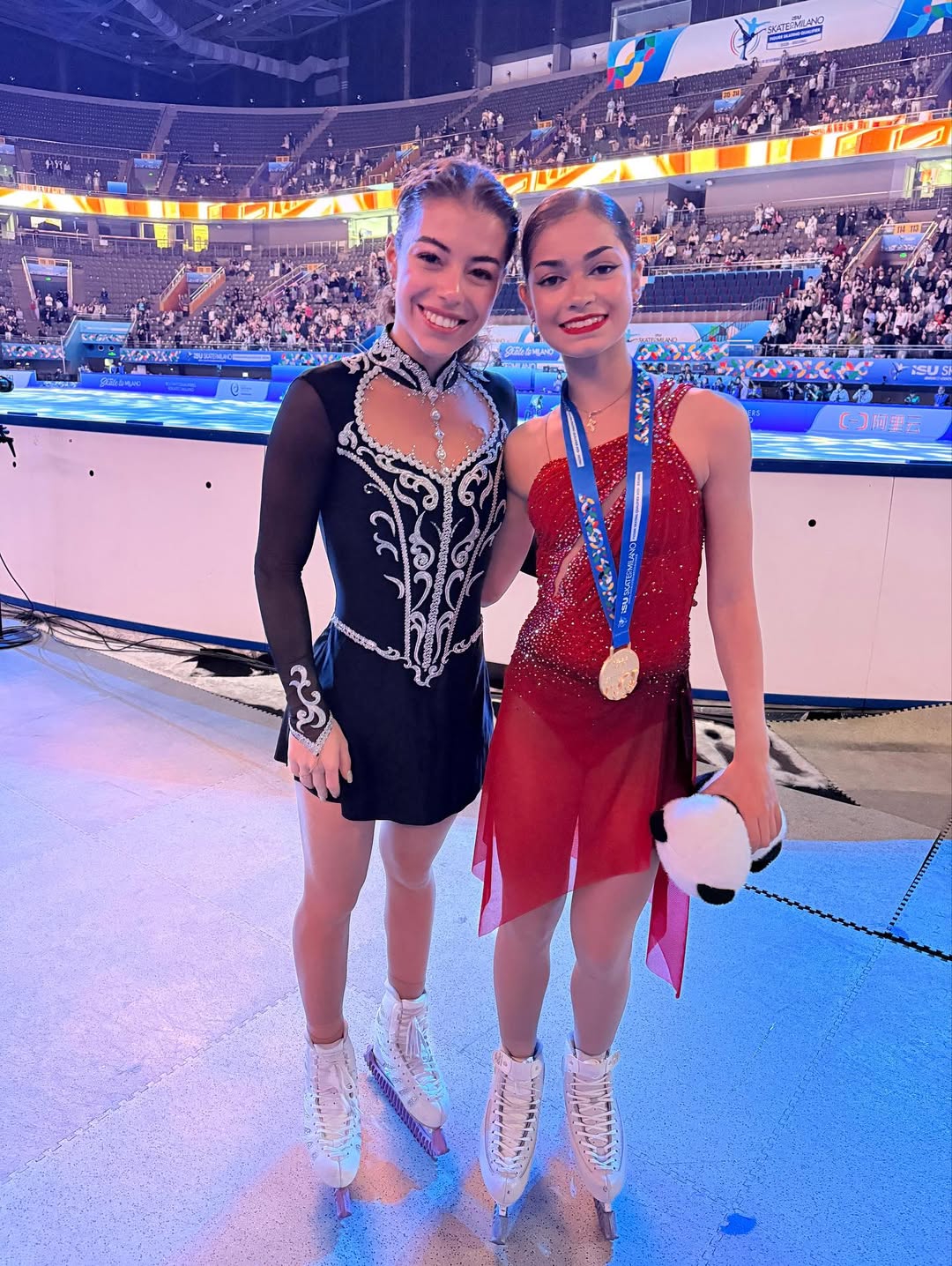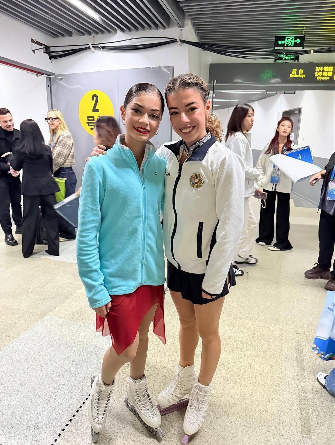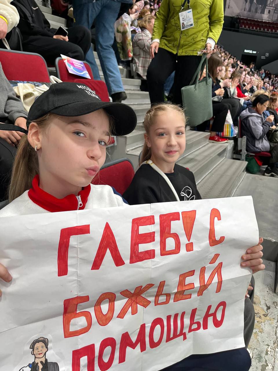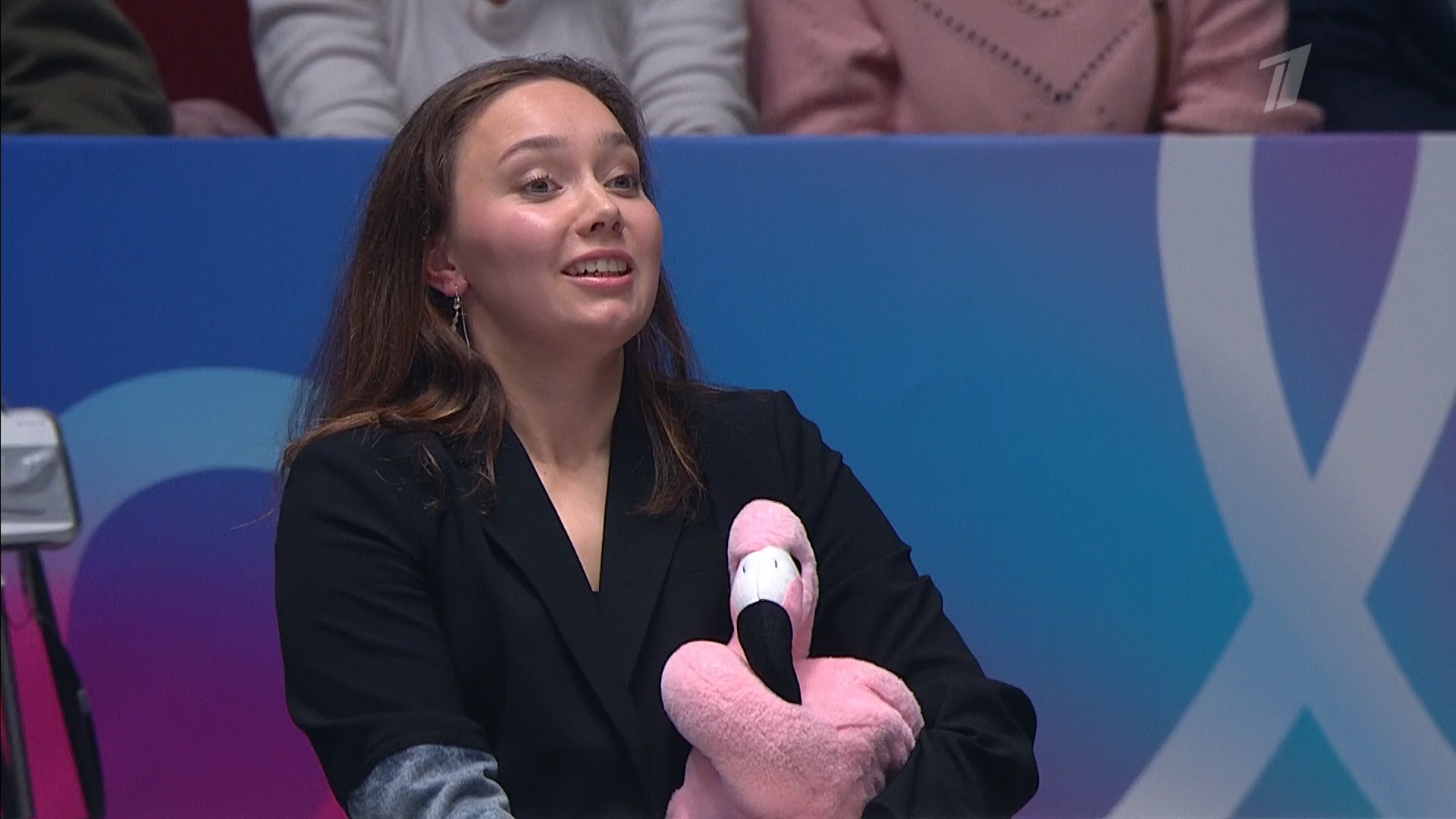 Одна няшка еле откатала свою пп второй раз за день, после чего высунула язык. Вторая няшка выскочила на лёд, ей закричали "куда???!!!" чем рассмешили няшку с микрофоном.