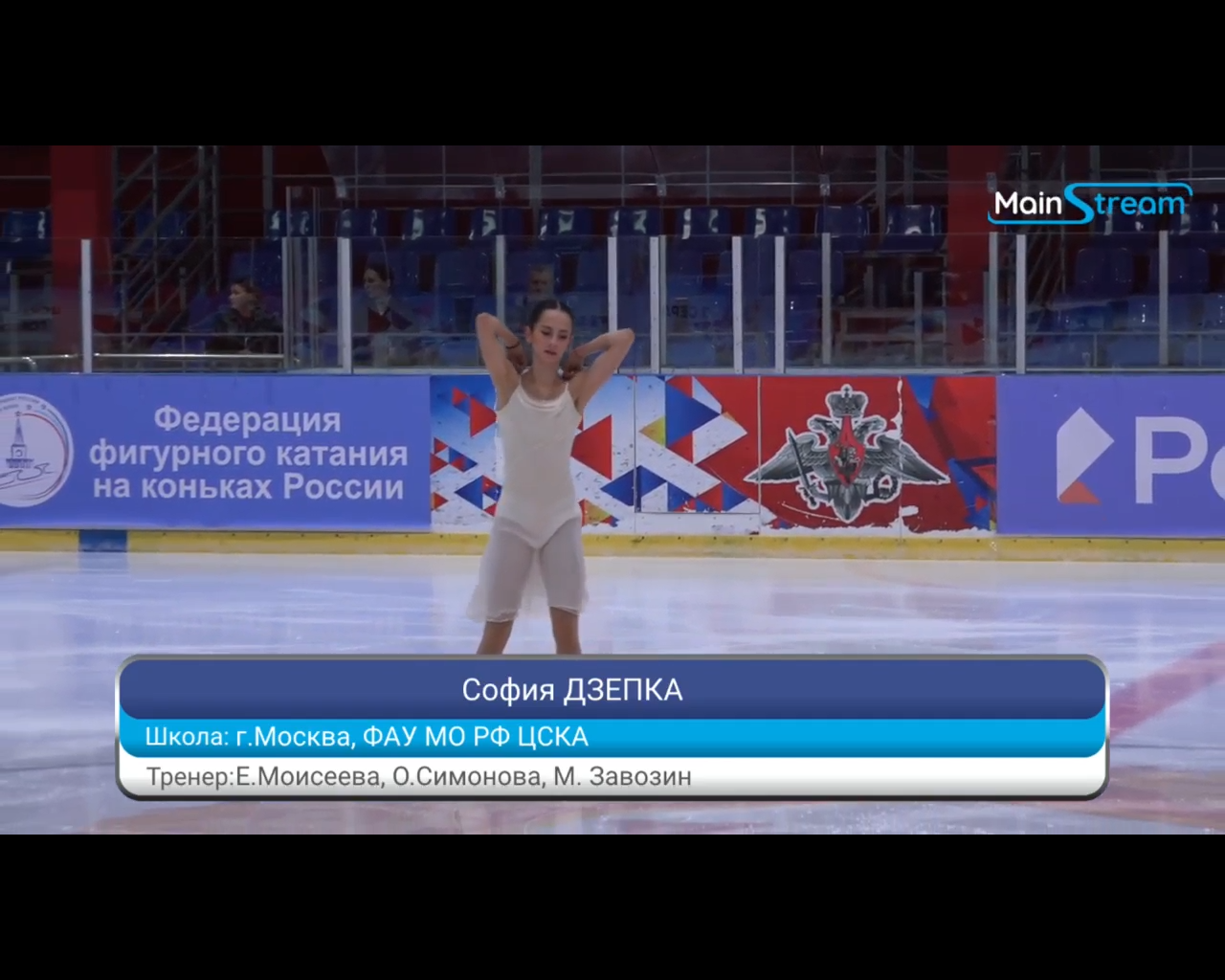 София Александровна ДЗЕПКА, Моисеева, Симонова, Завозин ФАУ МО РФ ЦСКА в ночнушке 3r 2a стоит в центре катка 3z3t на грани q stsq4