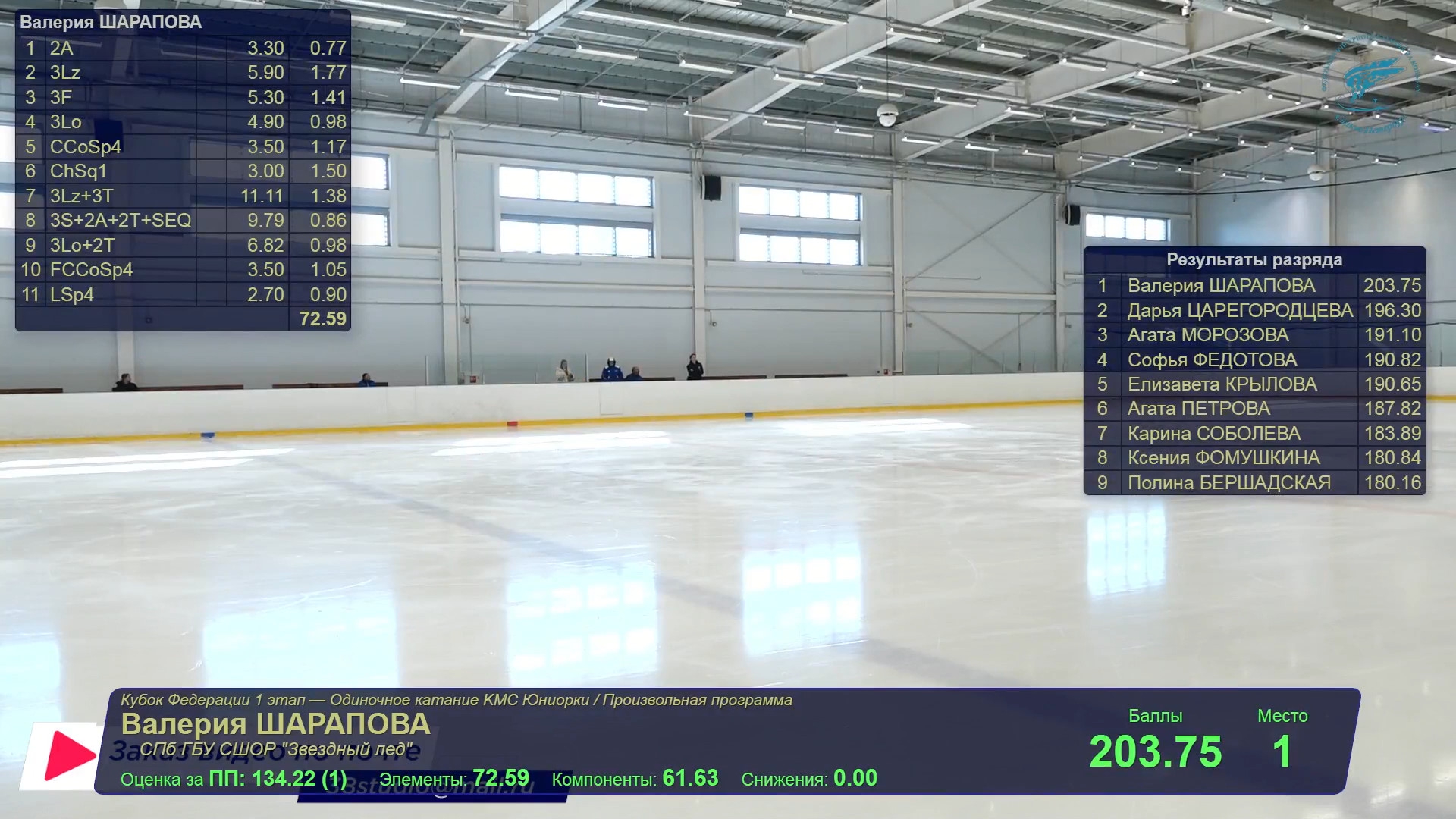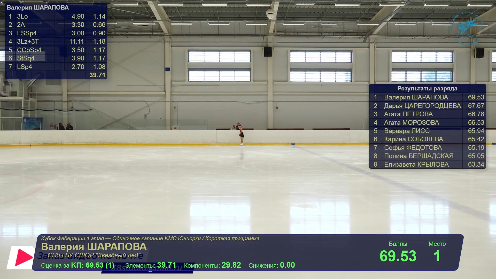 Валерия ШАРАПОВА 2a 3z 3f 3r прыжок в шпагат 3z3t 3s2a2t с подрыгиванием перед дуплем 3r2t 72,39 напомнила, какая она космическая. Но такая форма должна быть не в сентябре