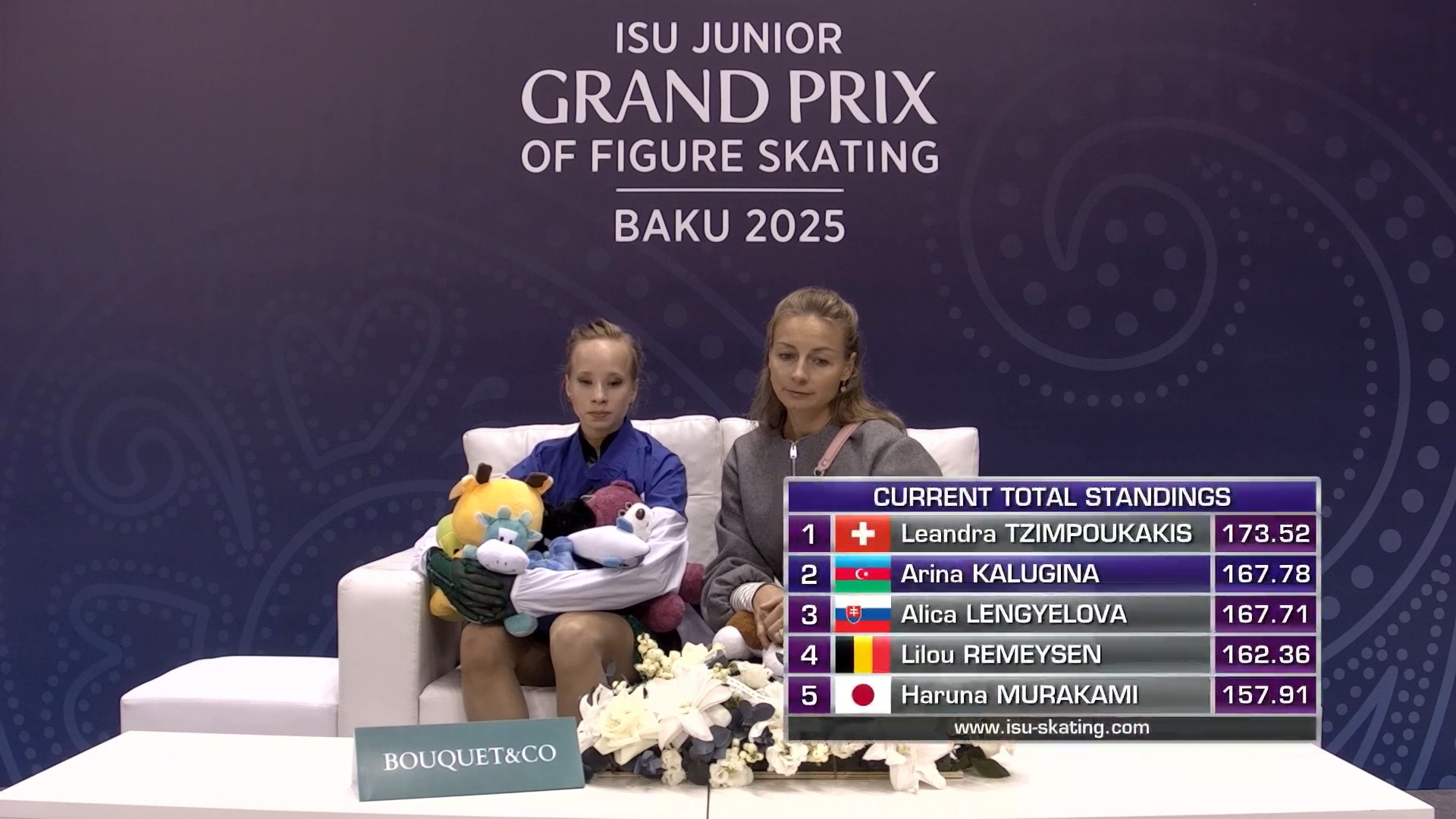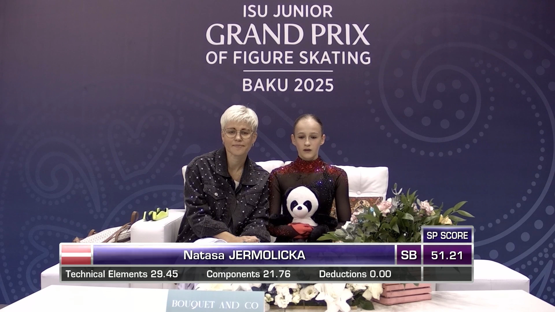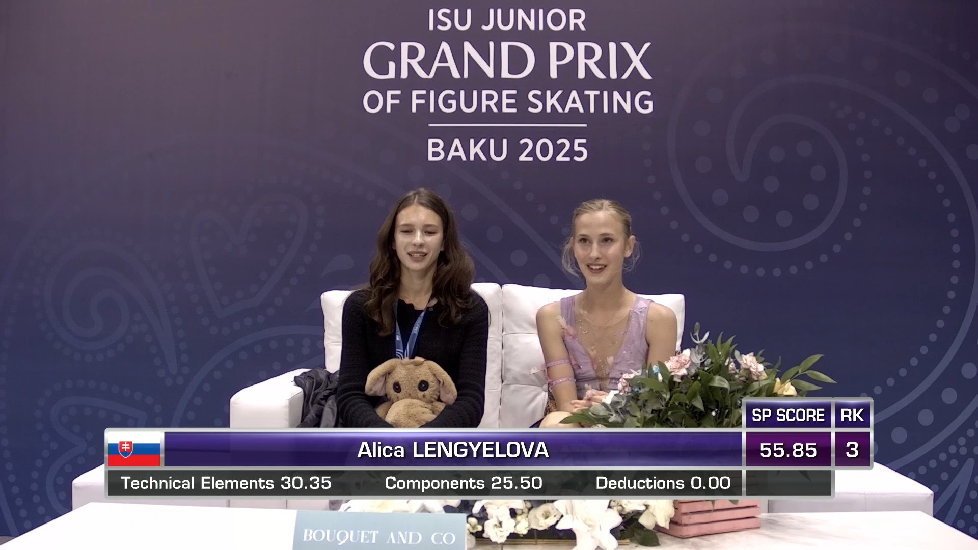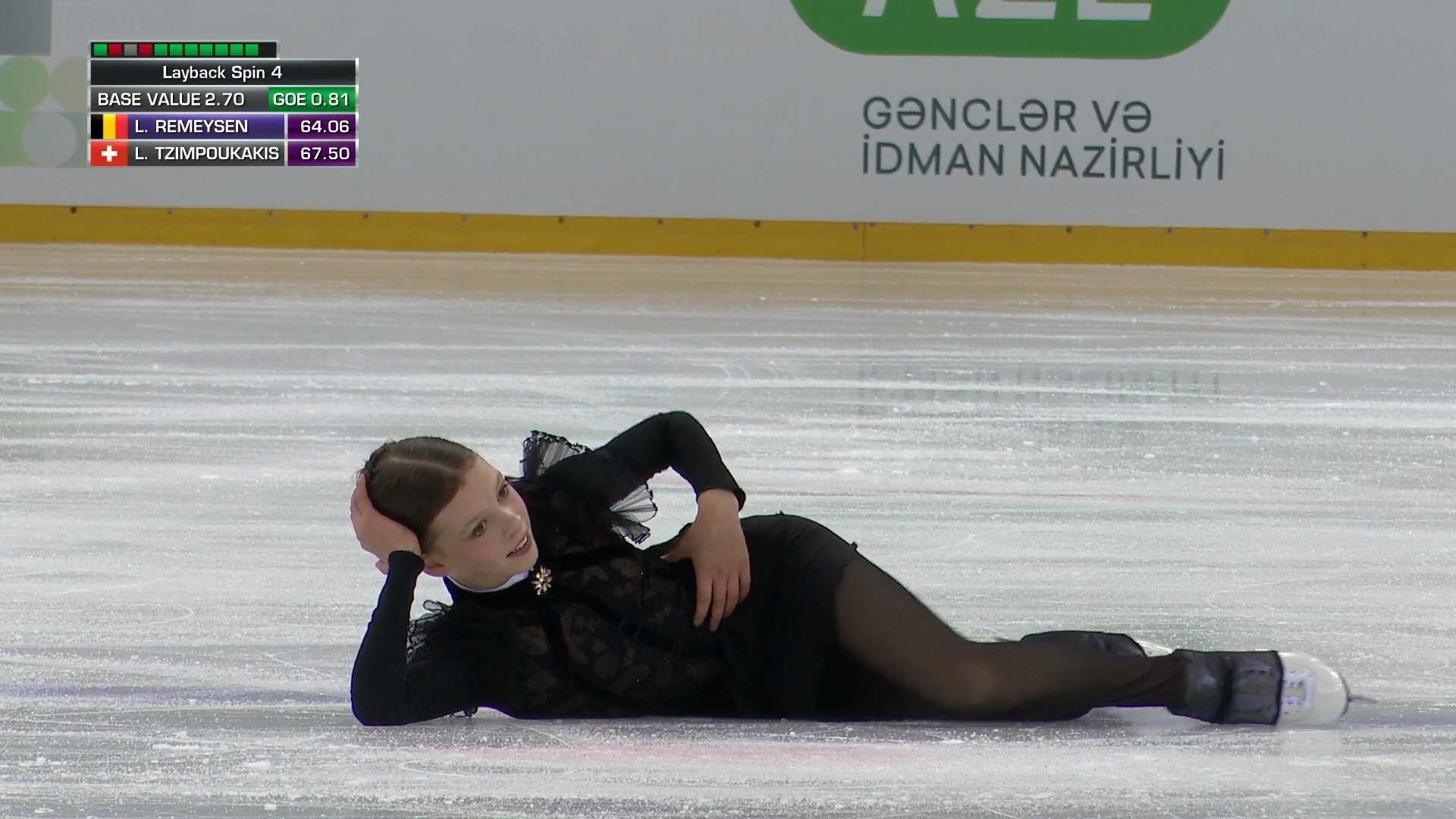 Sofia LAMPRINOU, 14 лет 2a< 2z2t с кантилевера 3r<<? stsq2 с разворотом в слайде на коленях прыжок в грибочек-комочек последним элементом