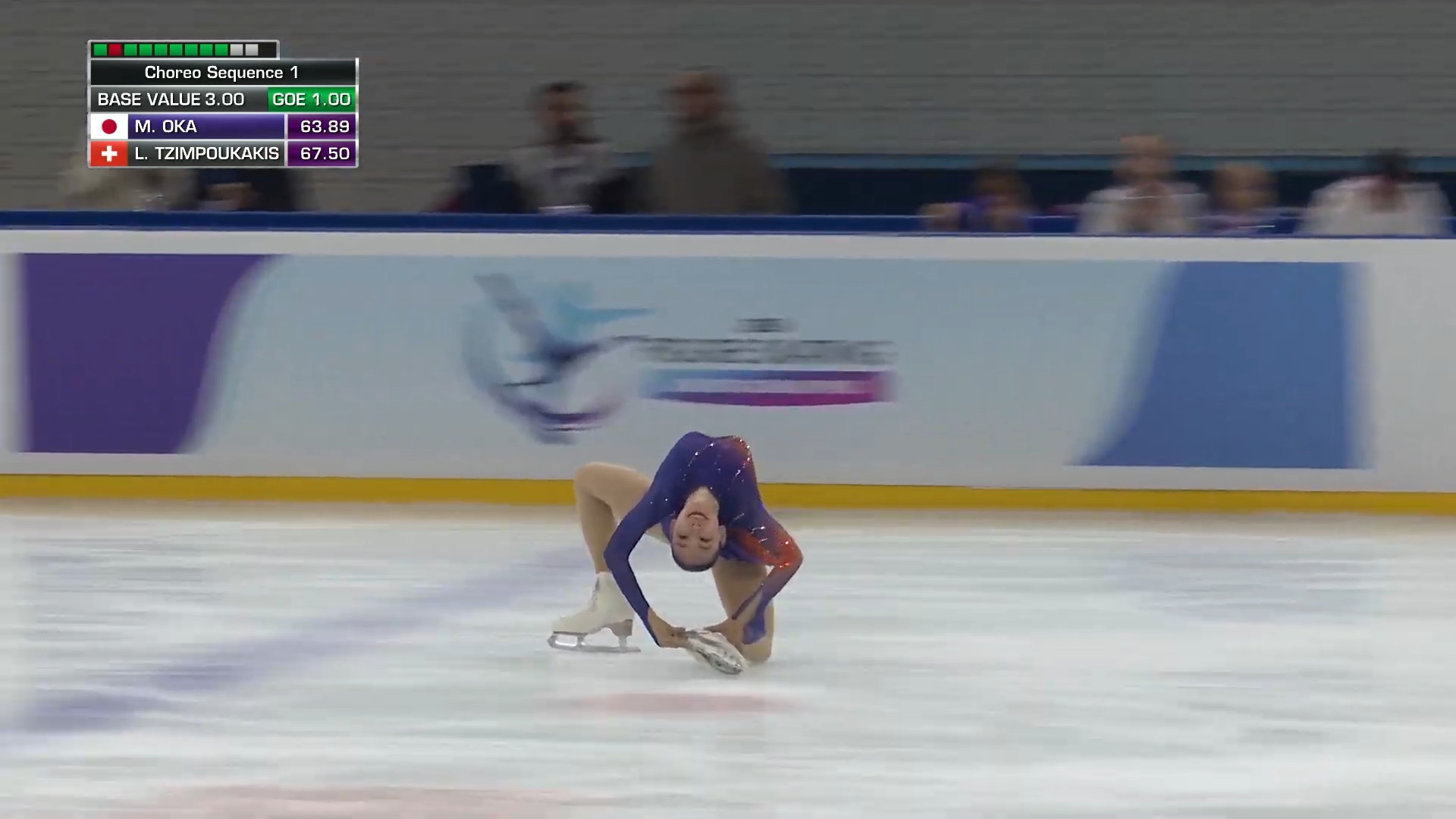 Полина Александровна ГУРЬЕВА Свердловская обл., МБОУ ДО СШ №8 Локомотив Смотрит на куриные крылышки в кляре на борте и надпись "настроение есть!" виляя при этом бёдрами 3f ho 2t 3f< fall перекатилась по льду 3r ho 2a< закрутило, рука, подпрыгнула чуть, 2a 3r< ho 2t 3s ho в полуприсяде chsq1 какой-то обратный слайд, в конце опасно похожий на падение 3t< кубарем через руки fall 2z stsq2