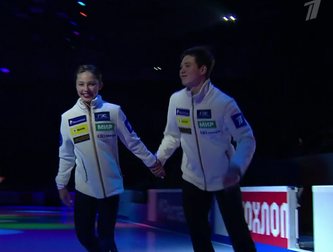 Варвара КОНДРАТЬЕВА с АЮ 3f 3s 3z3t< fall типа прыжок в шпагат 3z2a so 3f2a so на руку 3r2t2t ей кто-то (АЮ или Исаев) свистнул после первого 2Т неоднозначное впечатление. Наверное, парница из нее получится