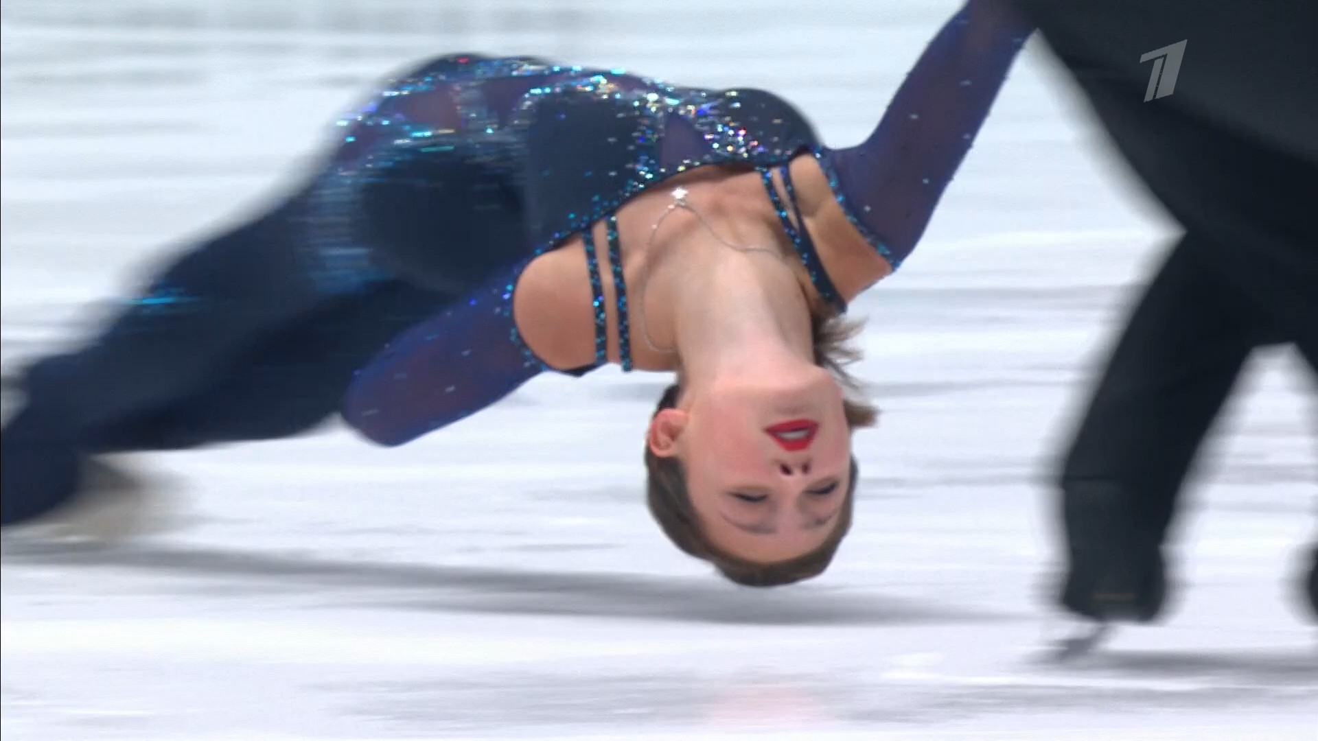 Мария Витальевна ПАРАМОНОВА, с Леушиным Москва, ФАУ МО РФ ЦСКА по новейшей моде этого сезона юбка спереди отсутствует, вместо неё висит какая-то полупрозрачная тряпочка с левого бока 3z< fall не оторвалась толком 3rq2t stsq1 спотыкнулась 2a<