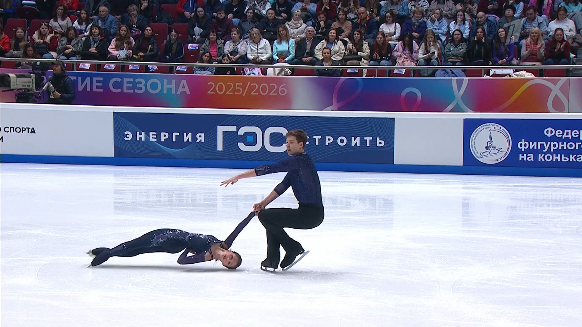Валерия ШАРАПОВА с Татауровым. Показывает пальцем в сторону судей. У некоторых фигуристок этим ограничивается вся хореография, но для лидера питерского фк странное "украшение" программы
