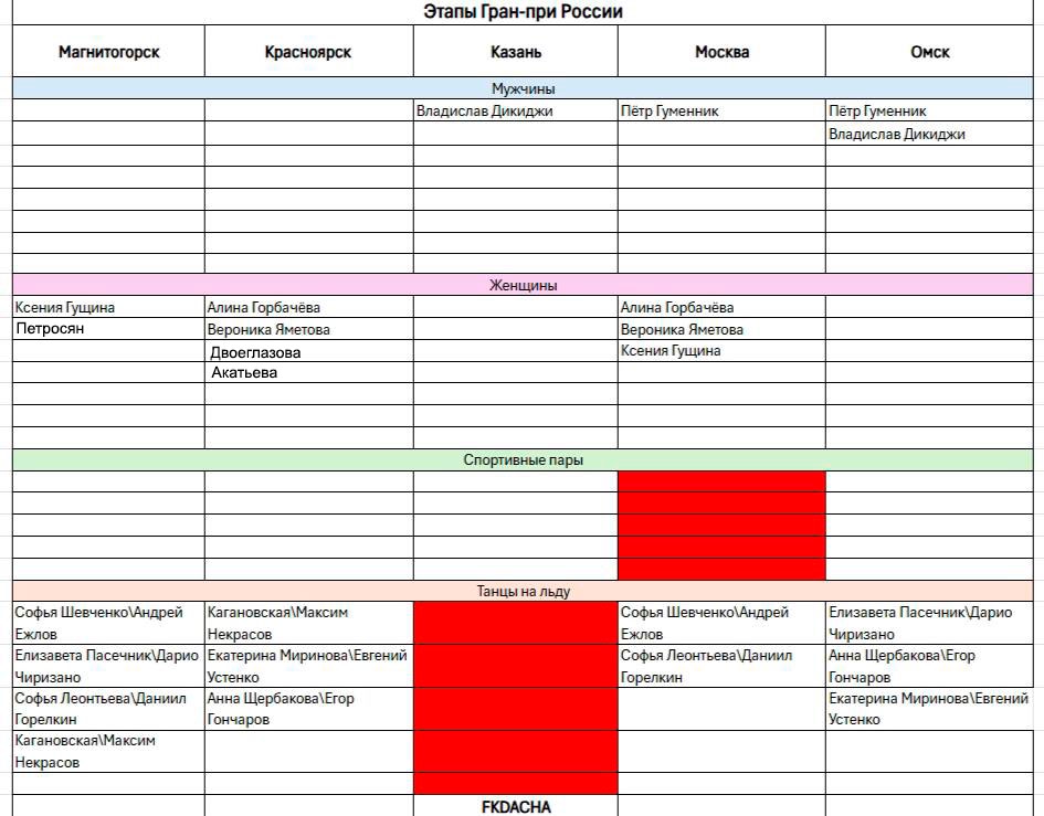 >>3244271 Всё так. Жируни пишут что не тренируется. Скоро узнаем точнее, у юниоров щас должны начаться вторые контрольные прокаты. Если Катюха там хотя бы просто появится, то не всё потеряно. А если не появиться, тогда сезон проебан. А Это списки предварительные просто, кто куда заявлен.