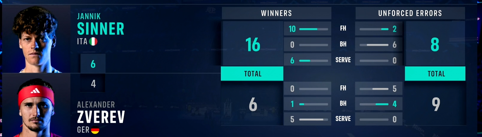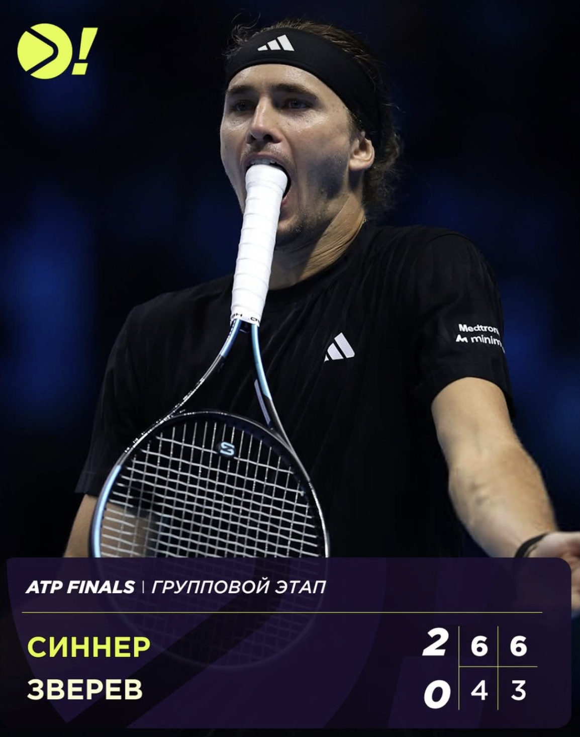 Первый гейм второго сета. Зверев фантастически пассивен. Медведев по сравнению с ним просто Алькарас. И как только Саша пытается в агрессию - сразу анфорс.