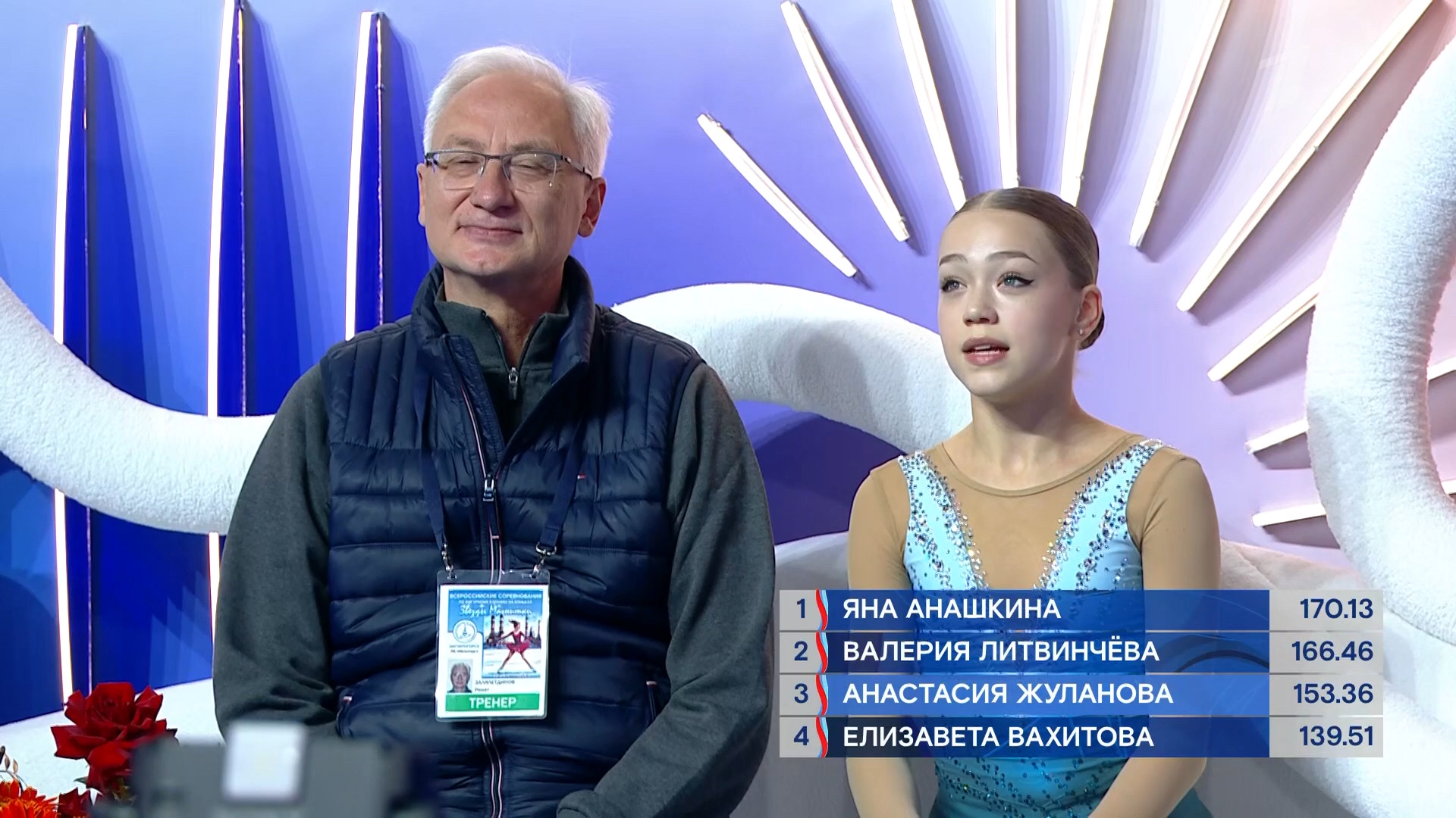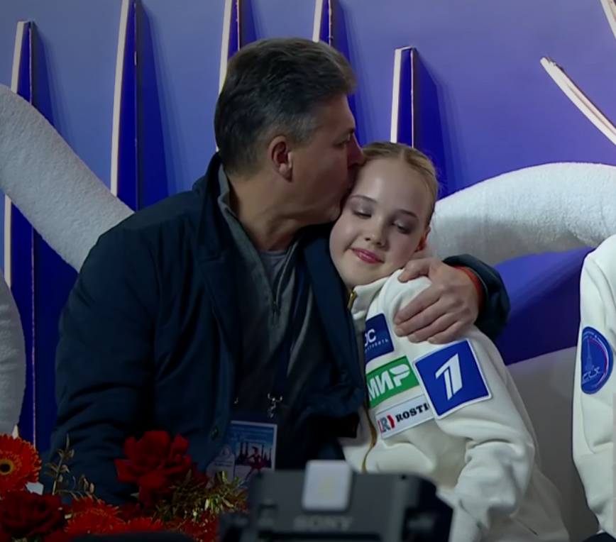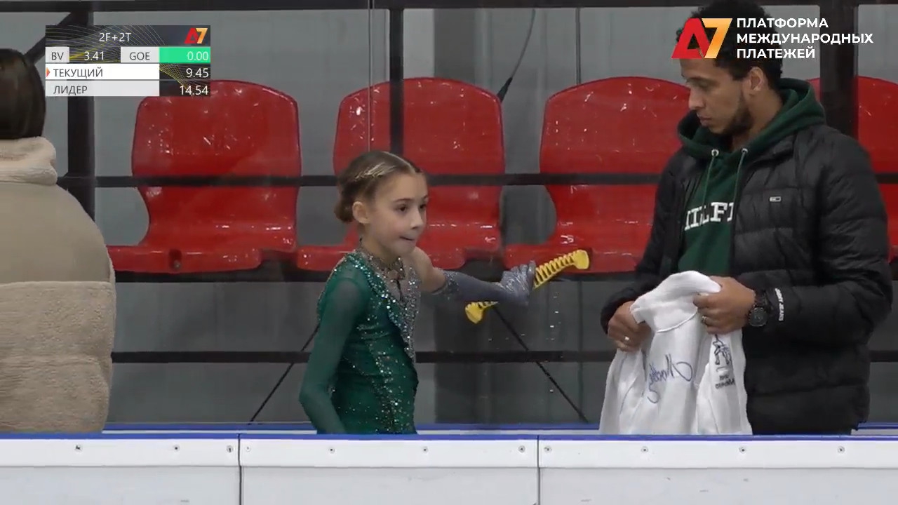 Василиса Николаевна ЖДАНОВА с известным тренером Легенда, Москвич колготки с блёстками 3r с подпрыжки 2a со спирали в сложный заход твизлами с руками наверх в ccosp 3z2t stsq2 my eternal tshukurshuka