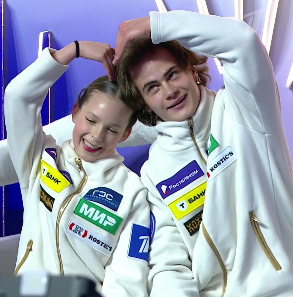 Елизавета Игоревна БОРИСОВА с клюквой и Бутиковым? Плохо видно 2a 3r< в твизлы тано 3z fall 22,53 сложно проиграть технику козлотрубниковым. Надо бежать от Соколовской