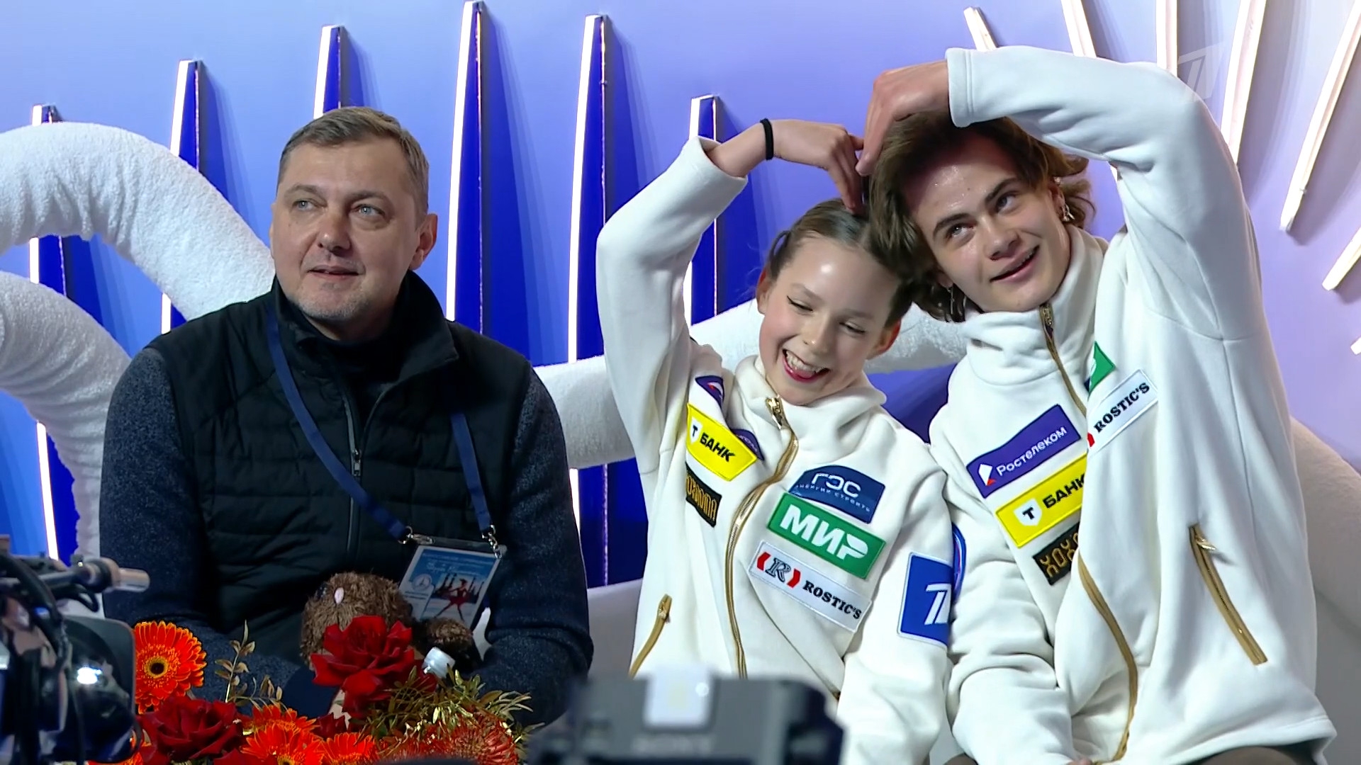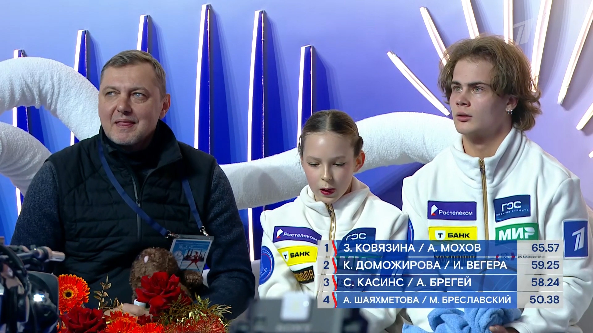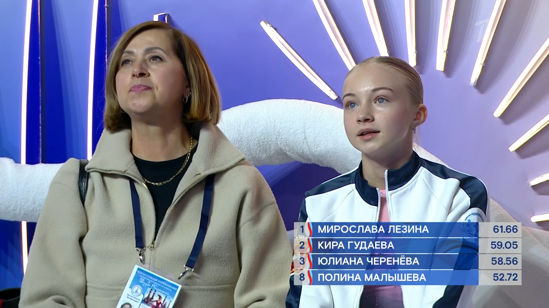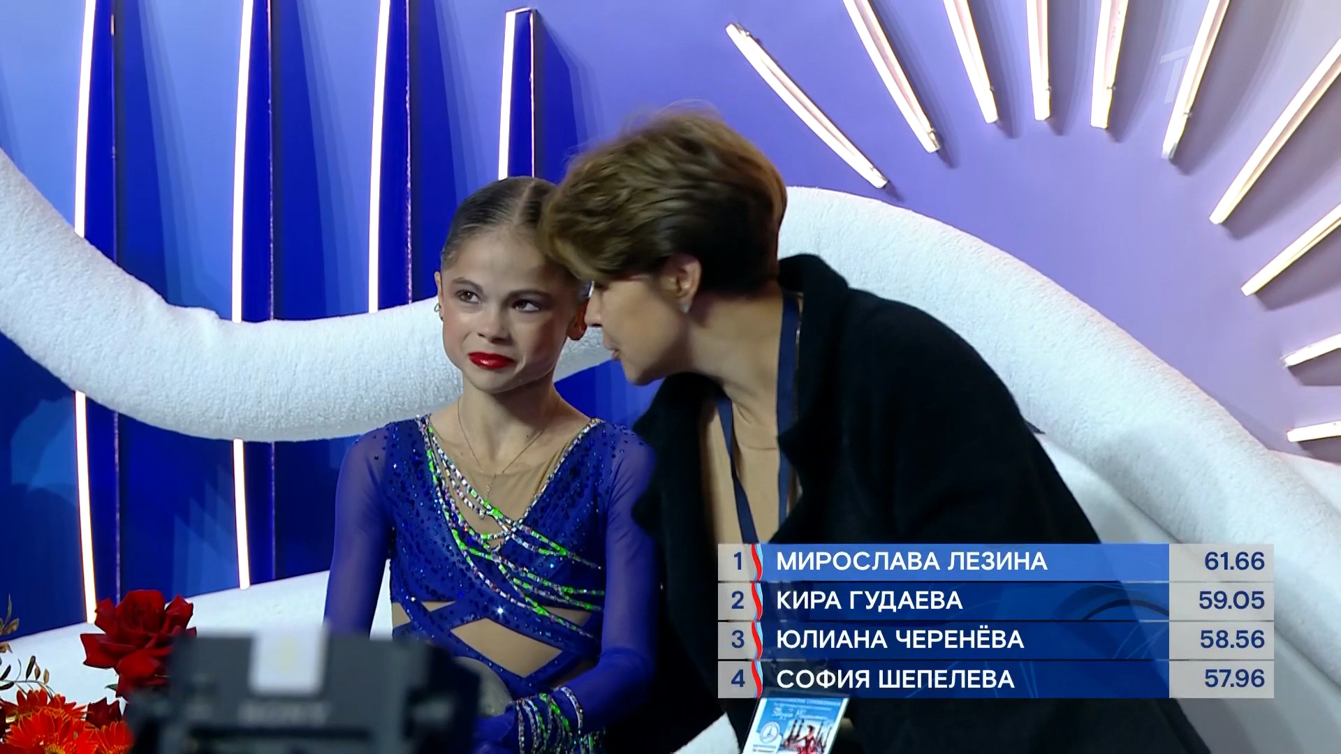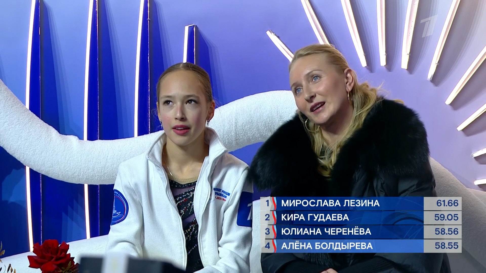 Мирослава Дмитриевна ЛЕЗИНА с Булычёвой Московская область, ООО "Центр спортивных технологий" 2a wobble? с захода Лезиной в кораблик 3r >one! two! cha-cha-cha! >cha-cha-cha! 3z3t постоянно какие-то фильтры на льду то включаются, то отключаются (3z!) stsq3 ревёт от эмоций