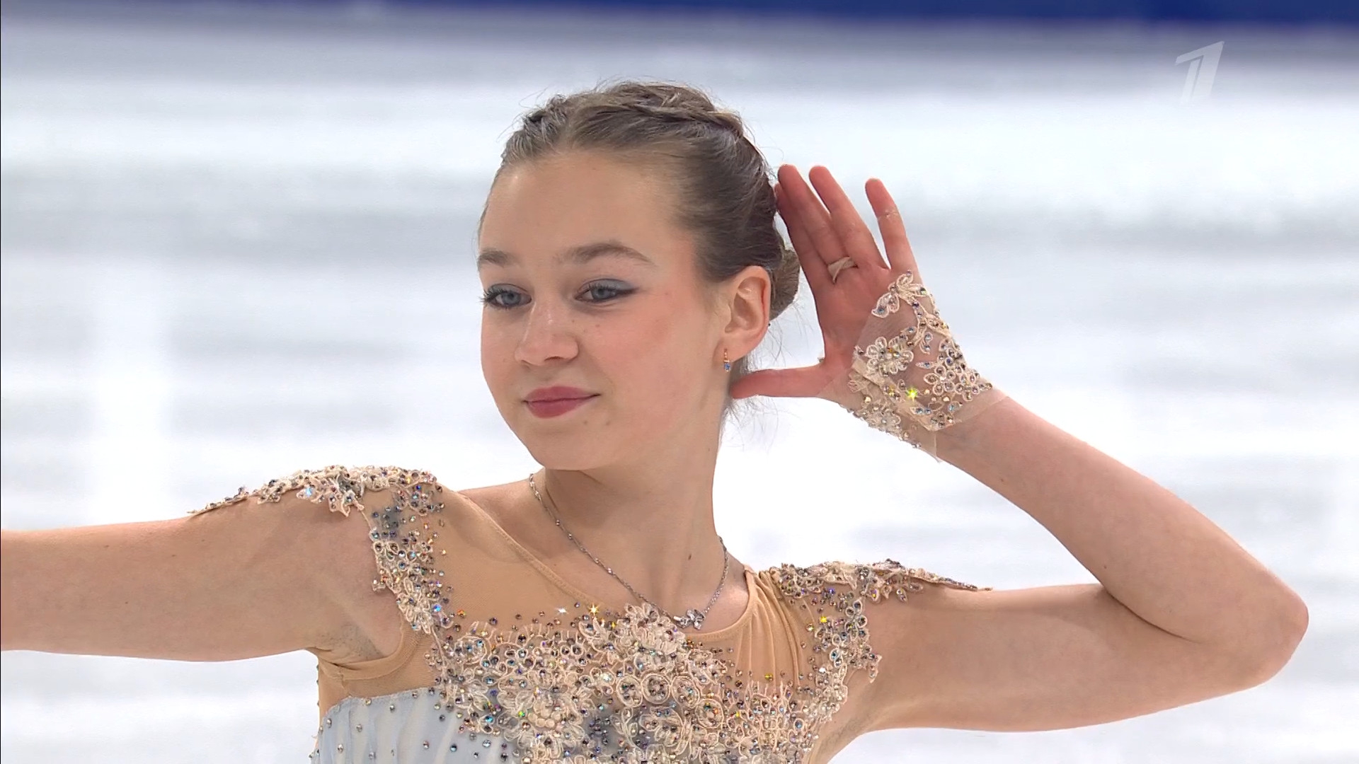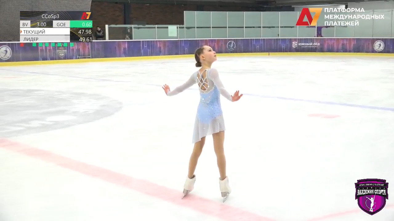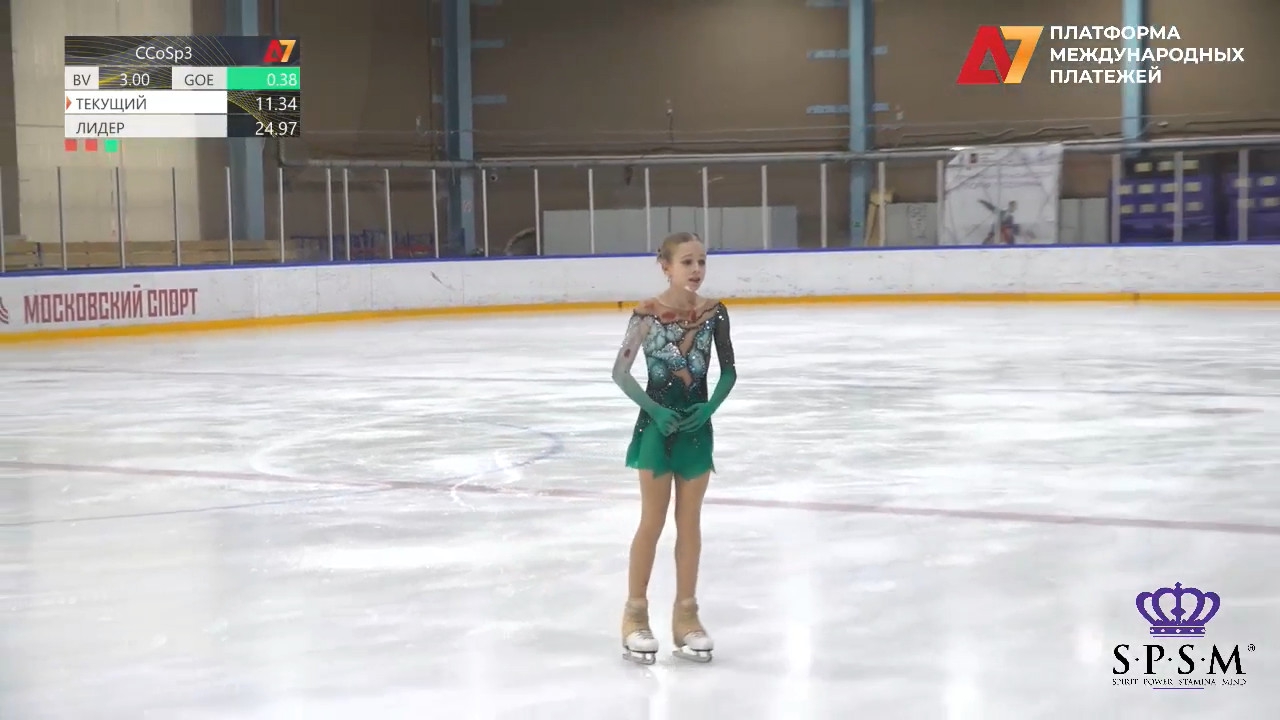 Елизавета Васильевна НИКОЛАЕВА г. о. Одинцово, ООО "АФК "Ангелы Плющенко" - ГБПОУ МО "Уор №1" 3s 3f!? в твизлы 3r so замаскированный в сложный выезд, Ханю бы такому поучиться 3z3t в подпрыжку 3z2a2a 3f2t chsq1 кантилевер