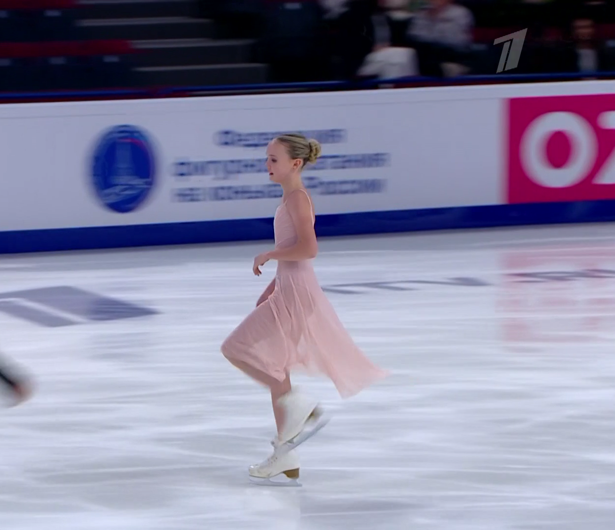 Ксения Алексеевна ФАДЕЕВА Московская область, СШОР им. Ю.Е. Ляпкина у борта 3z3t ho 2a 3f! ? 3sq?/<? chsq1 скребёт рёбрами в микрофон, разворот в слайде 3z с шарлотты, пауза 2a 3r<?2t2t 3r<? stsq1