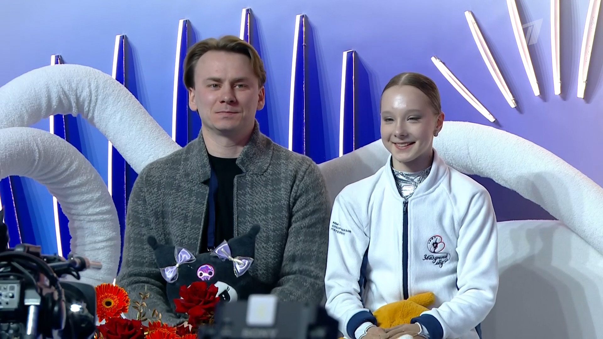 Юлиана Евгеньевна СЛАКВА с Ольгой Агапкиной Агапкина целует в лобик trendsetting blondie 2a so на руки 3t<2t1a 2a2t в подпрыжку 3sq? ho chsq1 прыжок в шпагат 3t< (<<?) (3tq) 2z!<