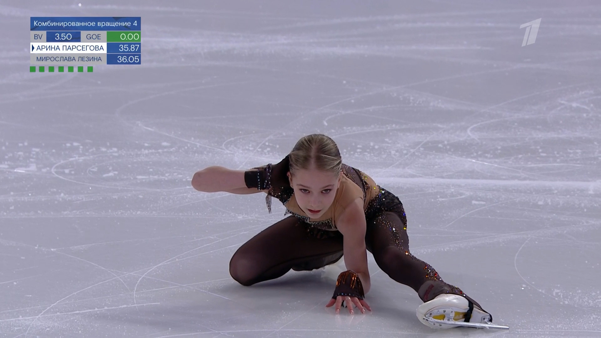 Арина Александровна МАРИНИЧЕВА Республика Карелия, СШ № 6 Holly sheit! Panova seems absolutely NOT amused! >за ворота башмачок сняв с ноги бросали 2a3t 2a 3ze ho 1e3s micro wobble 3f chsq1 3f fall +rep 3z!q2t 3r< в твизл ccosp4 в обе стороны stsq2 гнётся корпусом