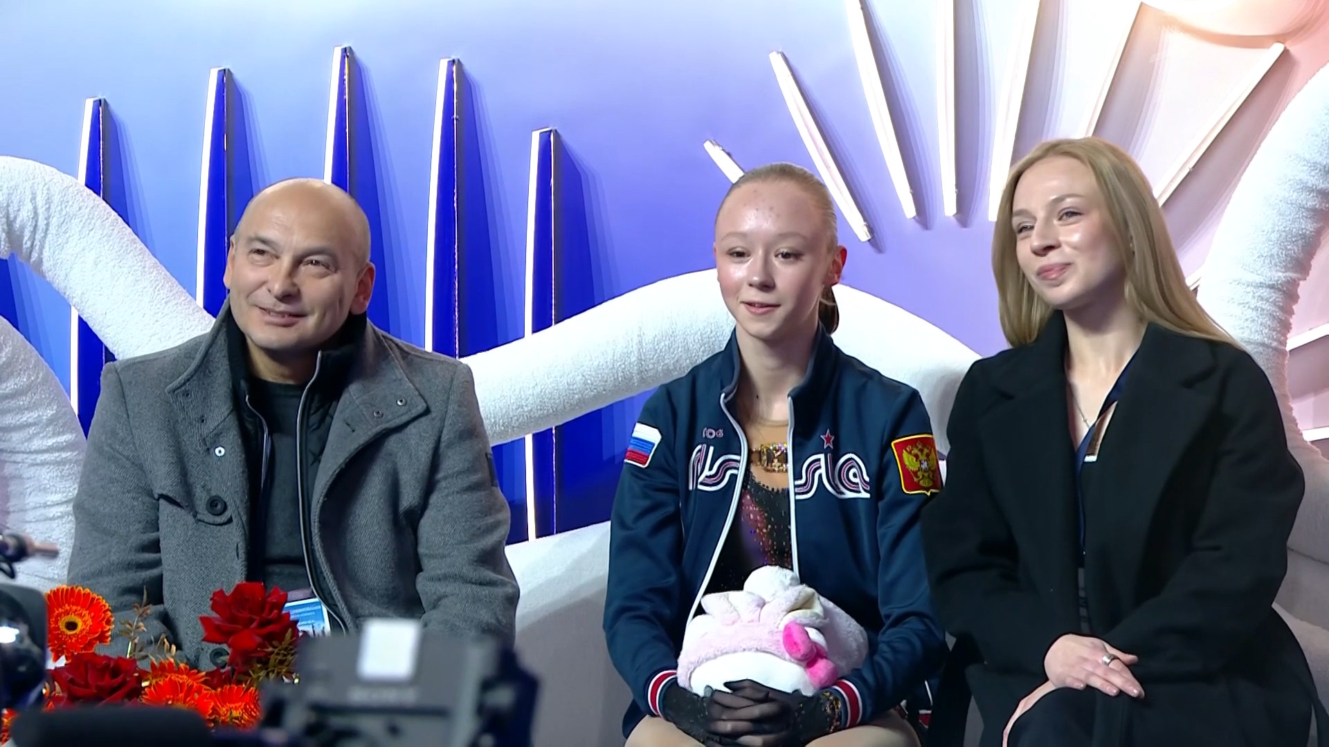 Мария Станиславовна ЗАХАРОВА Москва, СШОР им. С.А. Жука 4t - Захарова прыгает 4t и не плачет 2a3t 3s 3r chsq1 показывает пальцем в потолок в бести 3z<?3t 3f!?2a wobble 2t 3z stsq1 портит стуча зубчиком соперницам лёд
