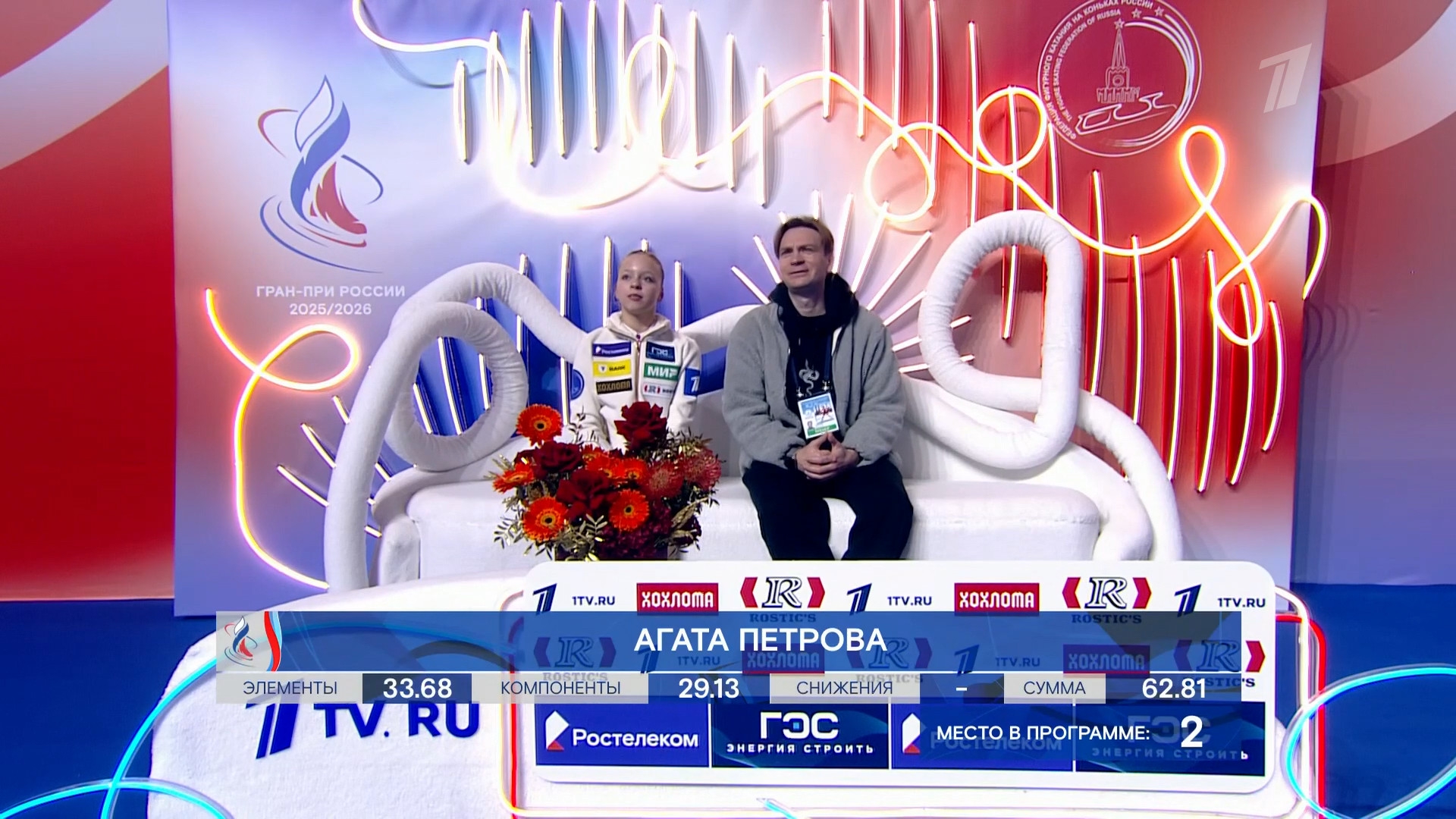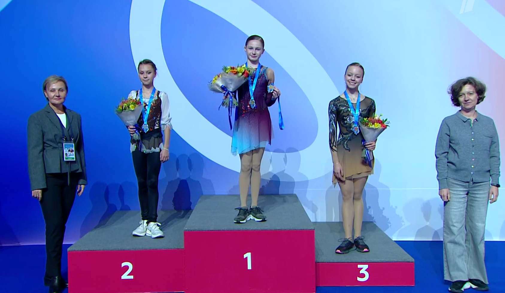 🥇Аделия Петросян стала первой на Гран-при России в Магнитогорске. Фигуристка упала с 4Т. 🥈Анна Фролова вторая. 🥉Дина Хуснутдинова прыгнула два 3А (один в каскаде) и стала бронзовым призером! ▪️Мария Захарова прыгнула 4Т и стала четвертой!